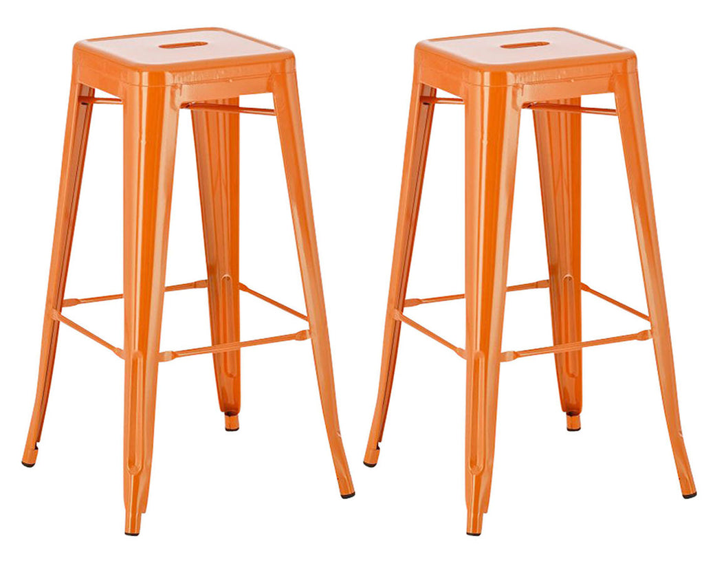 Lot de 2 tabourets de bar style industriel en métal avec repose-pieds orange TDB10120