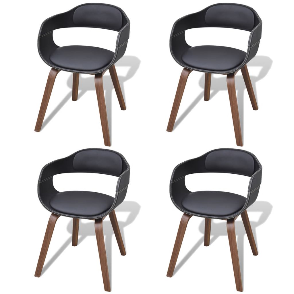Lot de 4 chaises de salle à manger cuisine design contemporain bois courbé et synthétique noir CDS021774