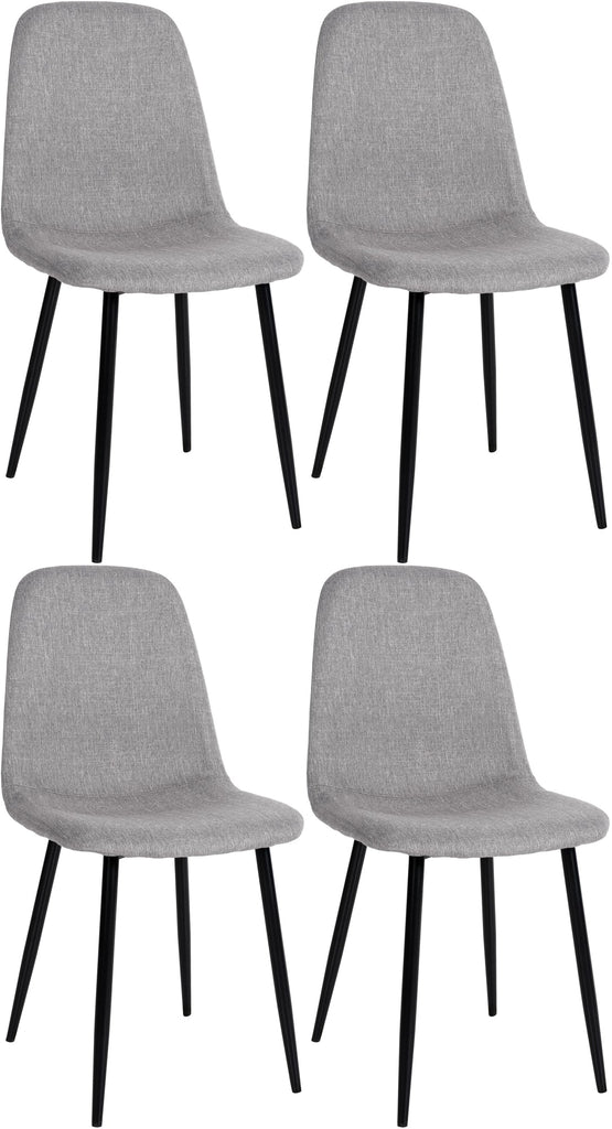 Lot de 4 chaises de salle à manger design simple avec pieds en métal noir assise en tissu gris clair 10_0001839