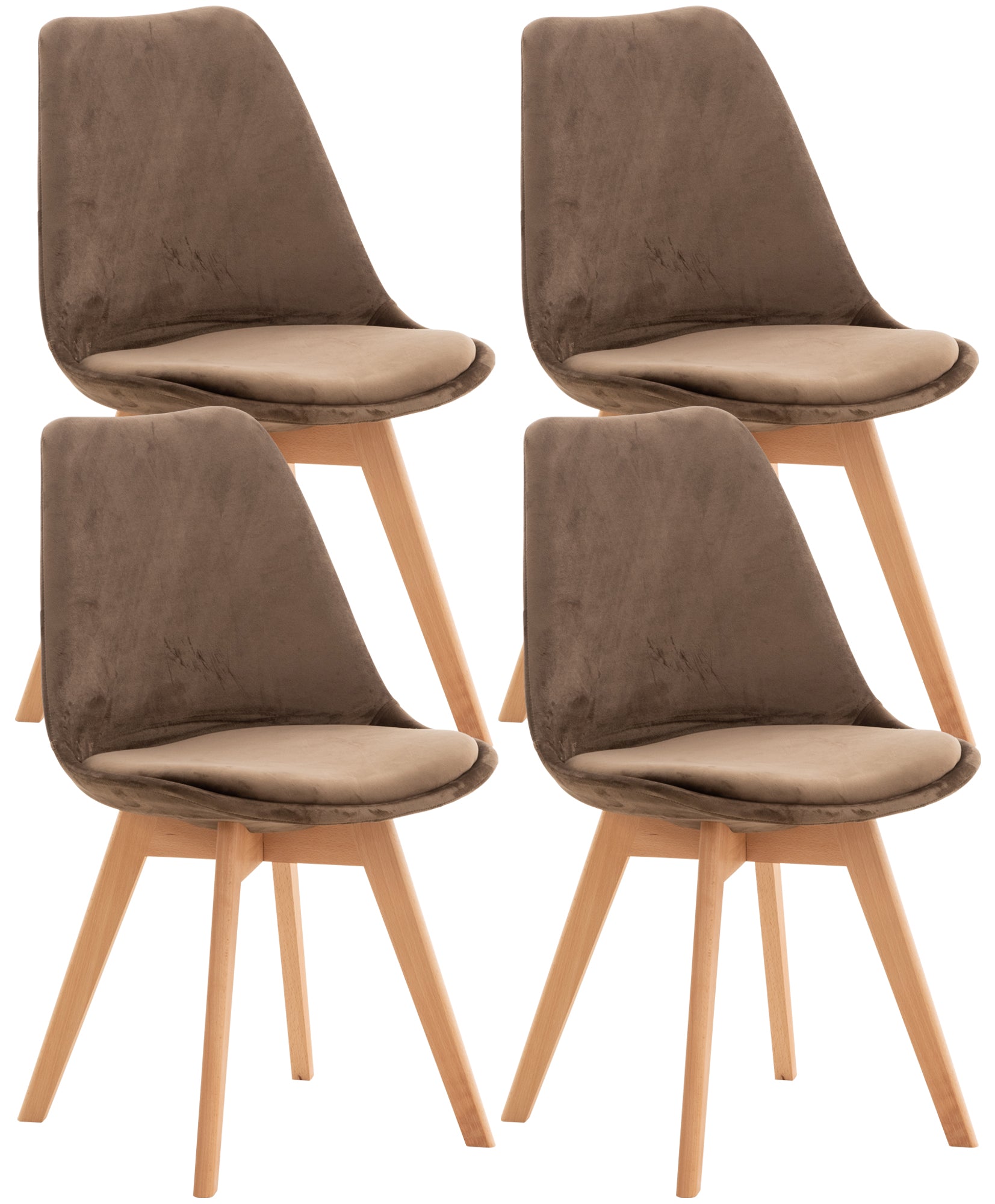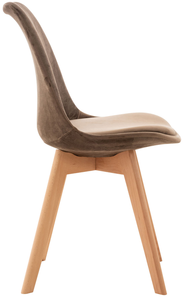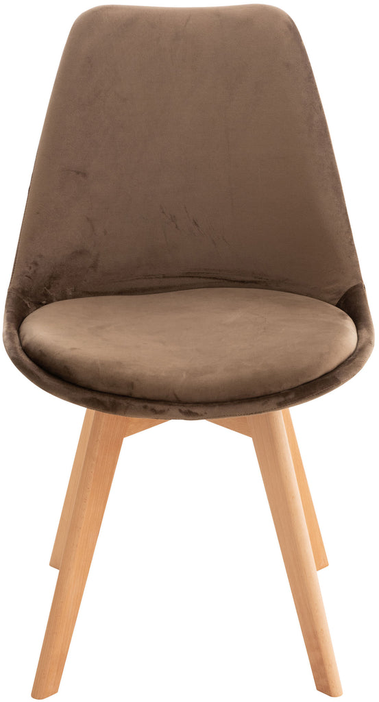 Lot de 4 chaises de salle à manger design scandinave en tissu velours marron foncé pieds bois clair