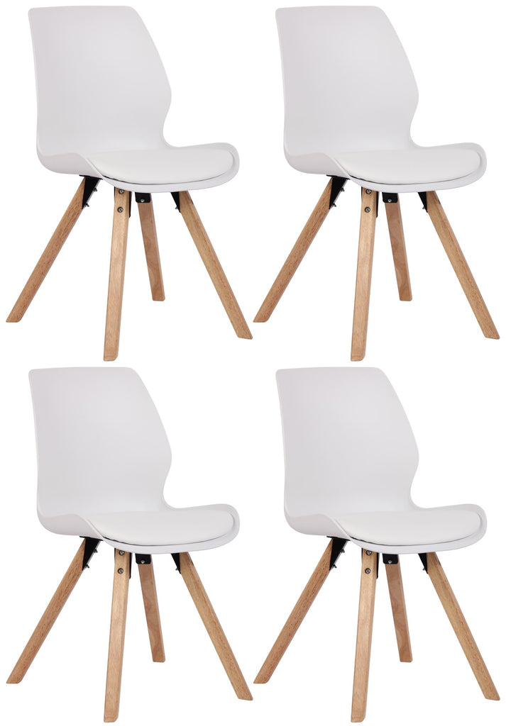 Lot de 4 chaises de salle à manger design scandinave en plastique et PVC blanc et pieds en bois clair 10_0001853