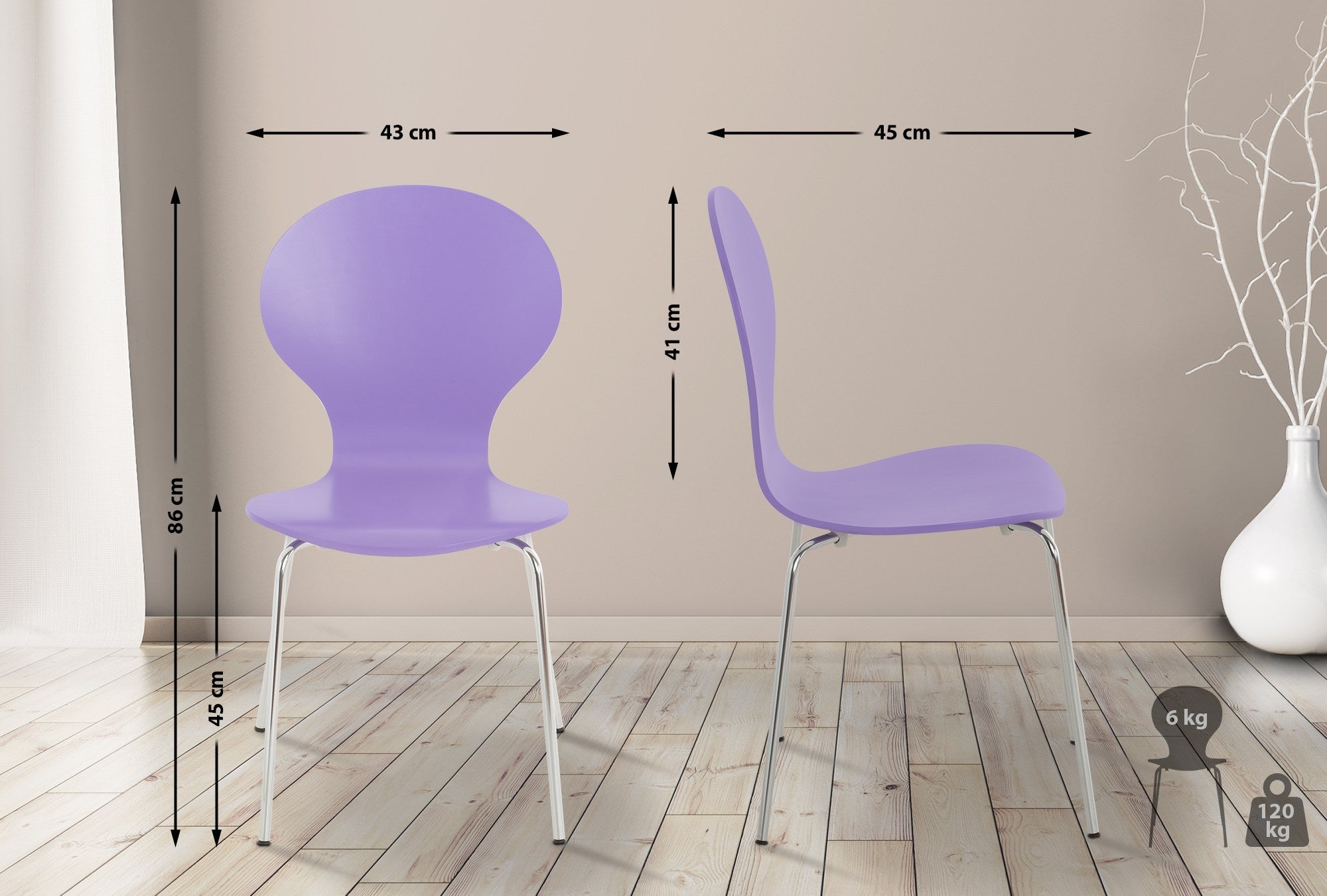 Lot de 4 chaises de cuisine salle à manger empilables dossier arrondi en bois violet et métal chromé 10_0003180