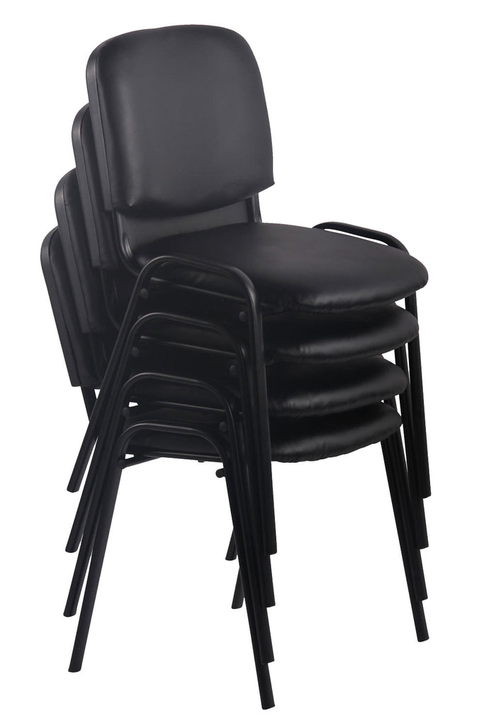 Cette chaise de visiteur se distingue par son design intemporel et son rembourrage confortable. La surface d'assise et le dossier sont, en effet, généreusement rembourrés et revêtus d'un similicuir de haute qualité aussi résistant que facile à entretenir. Cette chaise vous offrira, donc, une position correcte et confortable même après de longues heures d'utilisation. Le siège repose de manière stable sur un piétement constitué de 4 pieds en métal noir mat. Un autre avantage de cette chaise est que vous pouvez en empiler jusqu'à 4 pièces. Ceci vous permet de gagner en espace. Cette chaise est idéale pour un usage au quotidien dans les foires, les restaurants et bien d’autres cérémonies où vous souhaitez mettre vos convives à l'aise comme elle peut être utilisée dans une cuisine.