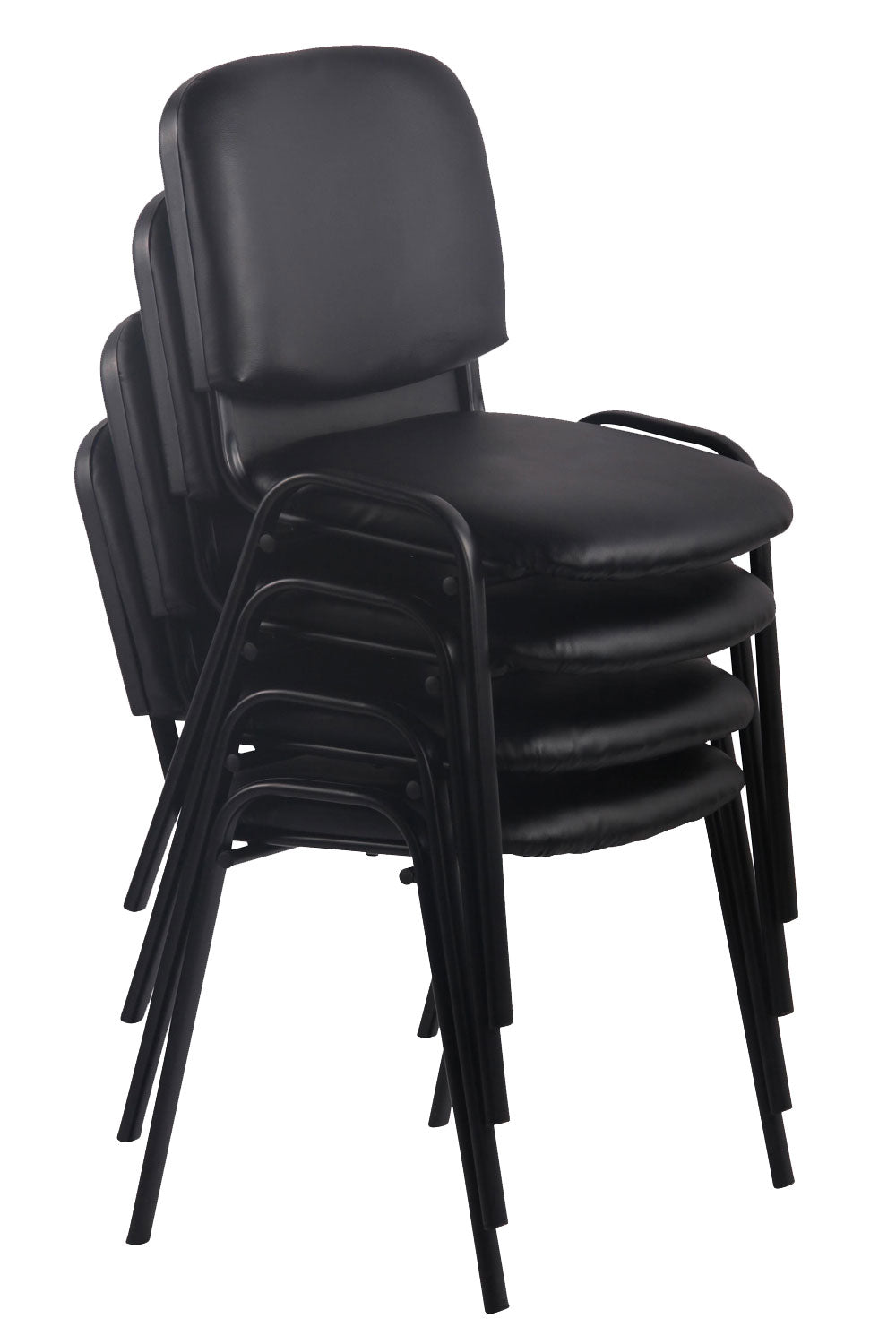 Lot de 4 chaises visiteur empilable zone d'attente en PVC noir piètement à 4 pieds en métal noir 10_0003188