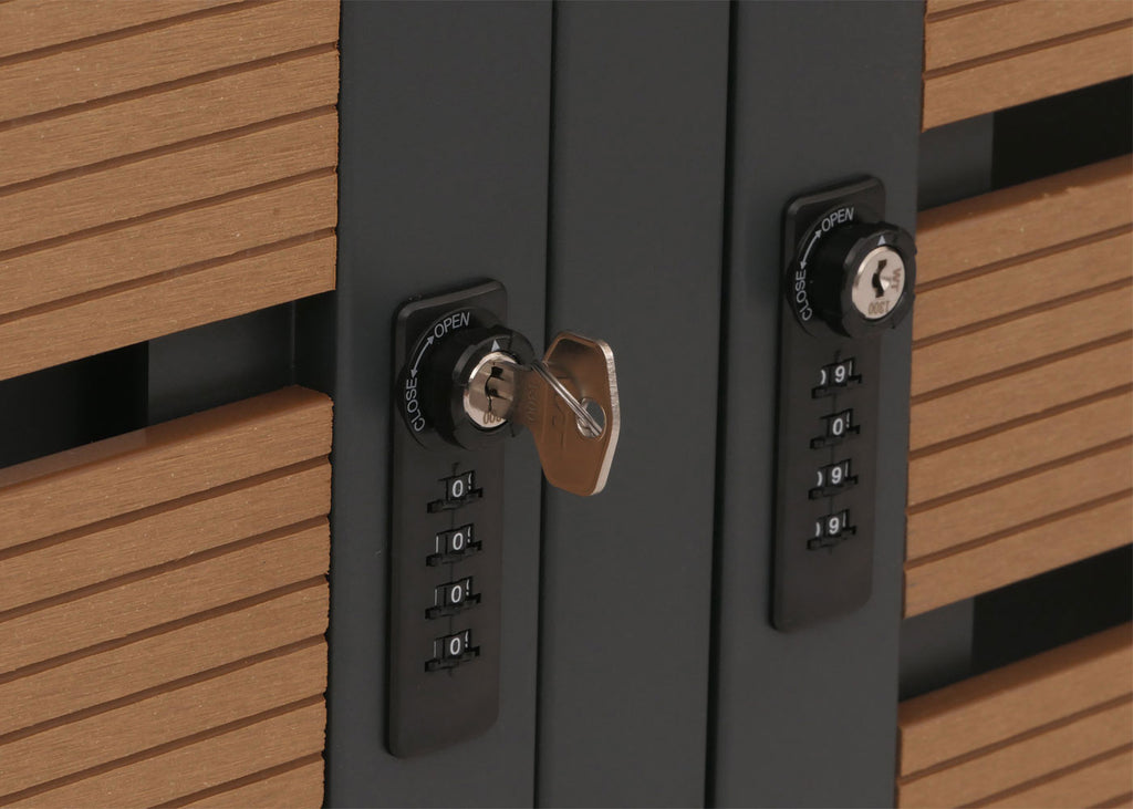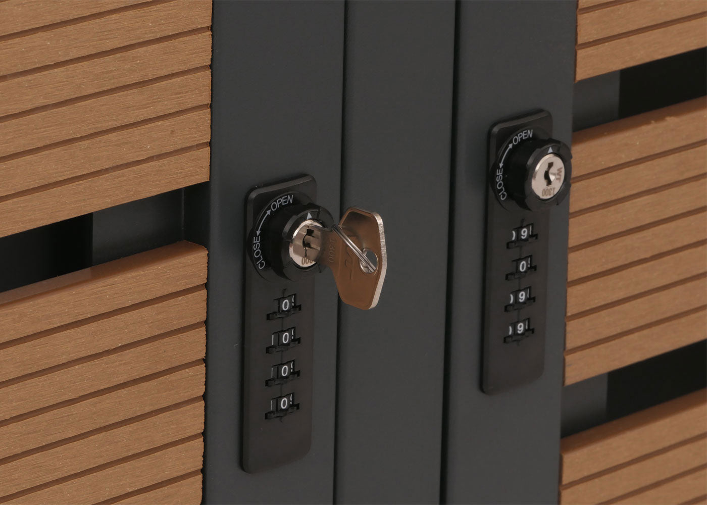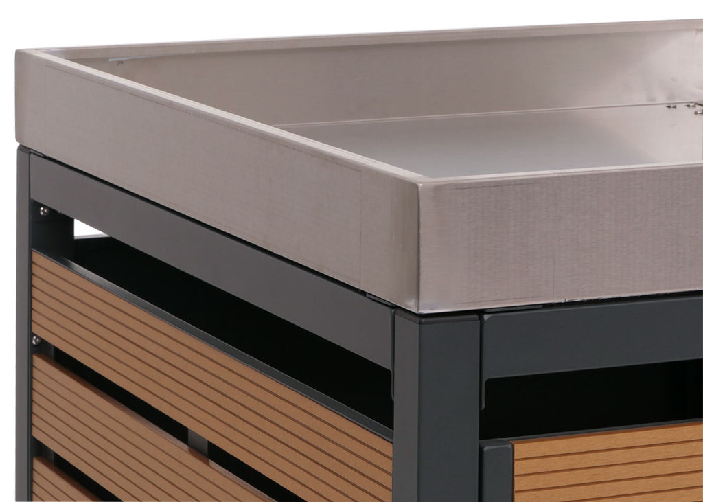 Ce revêtement de poubelle moderne avec bac à plantes n'est pas seulement attrayant visuellement. En plus des portes verrouillables et du boîtier robuste, le bac à plantes est équipé de trous de drainage pour l'excès d'eau.