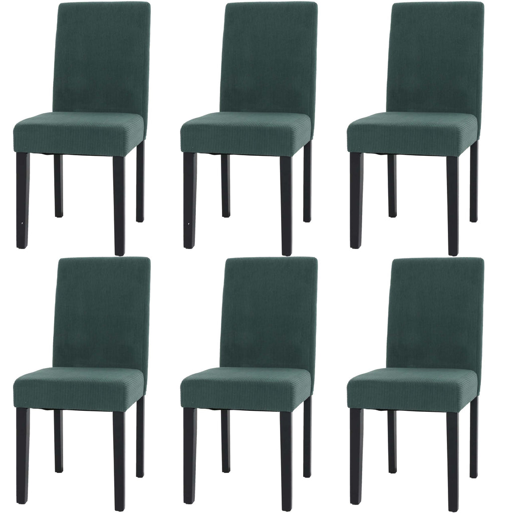 Lot de 6 chaises de salle à manger design moderne dossier haut en tissu velours côtelé vert et pieds en bois foncé 04_0007644