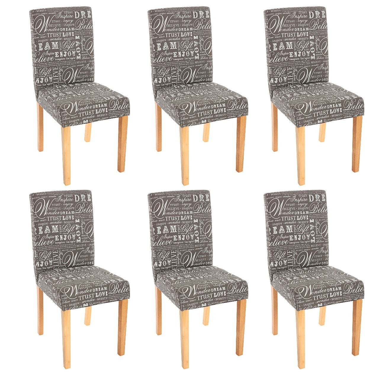 Lot de 6 chaises de salle à manger en tissu imprimé gris pieds clairs CDS04219