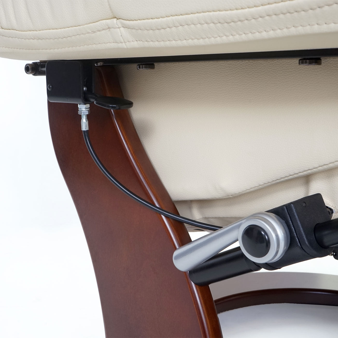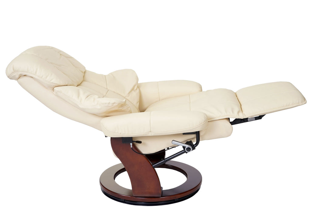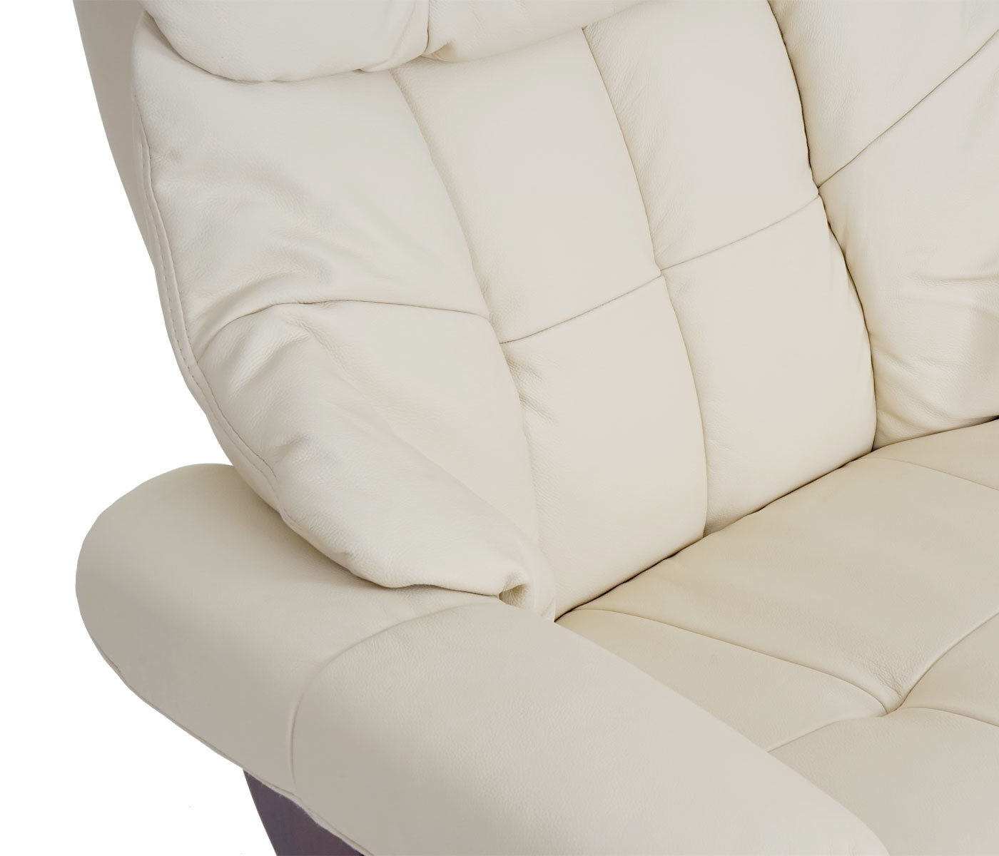 Fauteuil TV relaxation pivotant avec accoudoirs larges en cuir véritable crème cadre aspect en bois noyer 04_0007814