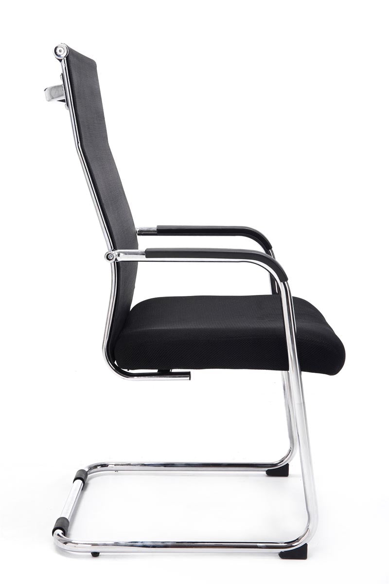 Chaise de bureau fauteuil visiteur sans roulettes dossier haut en tissu maille noir et métal chromé 10_0003318