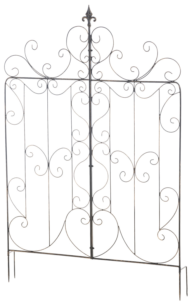 Le treillis est de style campagnard rustique et impressionne par son design classique et ses belles décorations. Il est parfait pour l'aménagement de jardin et est conçu pour mettre en scène des plantes de manière décorative. Le treillis autoportant est emballé d'origine et facile à assembler. Les deux moitiés doivent seulement être vissées ensemble et enfoncées dans le sol au niveau des crochets de sol.