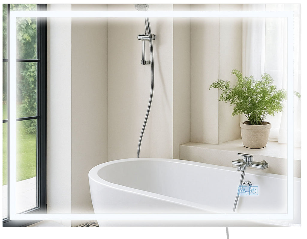 Ce miroir mural est équipé d'un éclairage LED périphérique pour un éclairage optimal. Trois couleurs de lumière sont disponibles (blanc chaud à 3 000 K, blanc neutre à 4 000 K et blanc froid à 6 000 K) et l'intensité lumineuse est réglable.