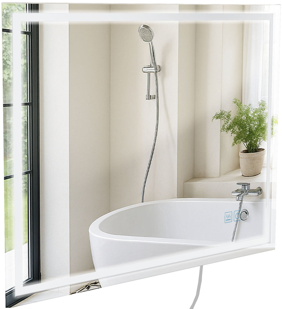 Pour une vision claire après la douche, ce miroir de salle de bain est doté d'une fonction antibuée. L'éclairage et la fonction antibuée se contrôlent via des panneaux tactiles intelligents.