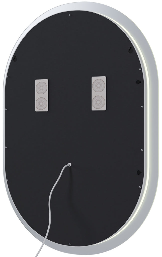 Ce miroir mural est équipé d'un éclairage LED périphérique pour un éclairage optimal. Trois couleurs de lumière sont disponibles (blanc chaud à 3 000 K, blanc neutre à 4 000 K et blanc froid à 6 000 K) et l'intensité lumineuse est réglable.