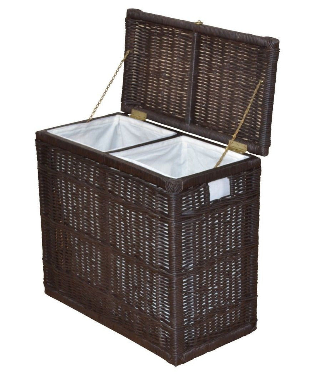 Panier à linge en rotin marron avec deux bacs de rangement DEC05042