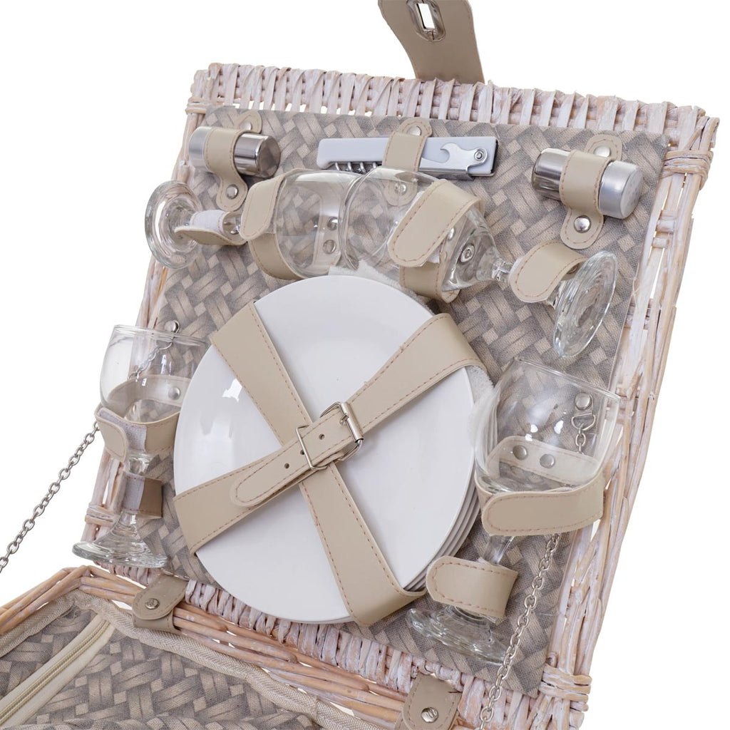 Panier pique-nique pour 4 personnes sac pique-nique + glacière, verre porcelaine inox, beige