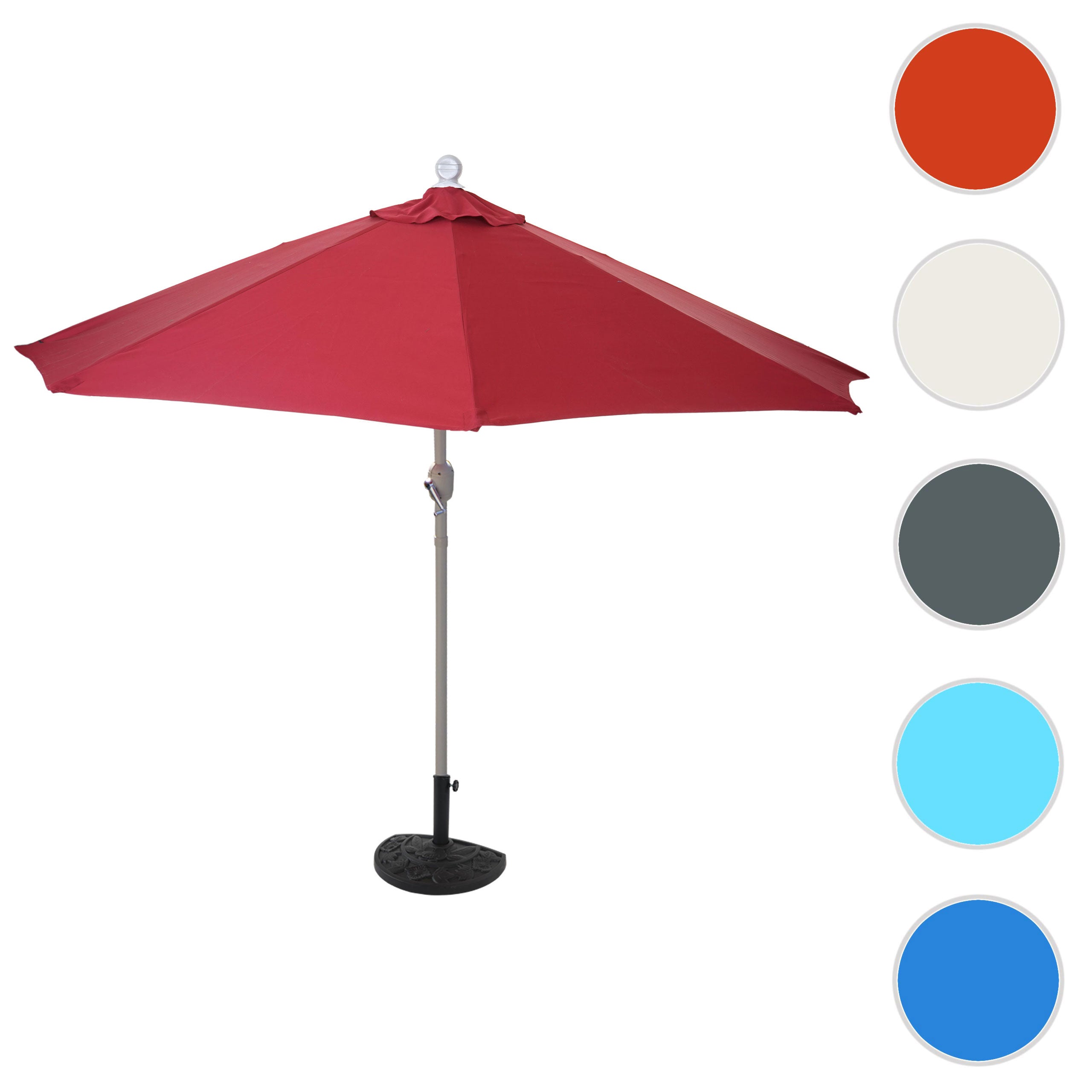 Demi parasol semi-circulaire balcon terrasse UV 50+ polyester/aluminium 3kg avec une portée de 300 cm bordeaux avec support 04_0003845