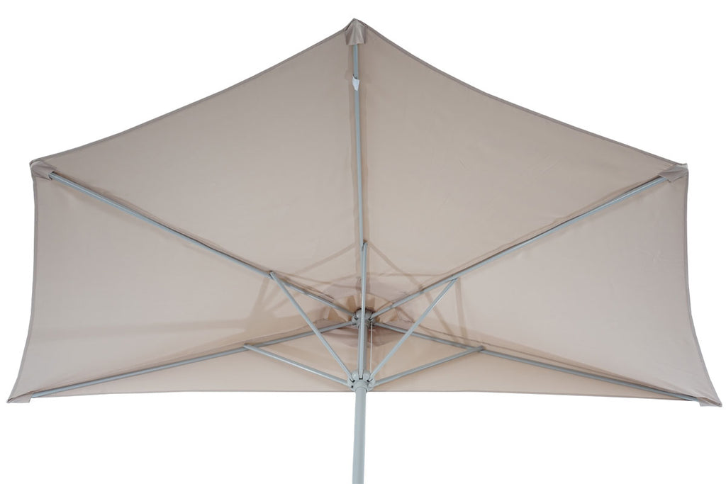 La housse en polyester de haute qualité vous protège non seulement de manière fiable contre les rayons UV, mais est également brièvement étanche à la pluie, de sorte que même une petite averse ne devienne pas un problème. Des entretoises métalliques renforcées assurent une stabilité au vent et une stabilité supplémentaire, tandis que vous gardez toujours la tête froide grâce au capot de circulation d'air intégré.