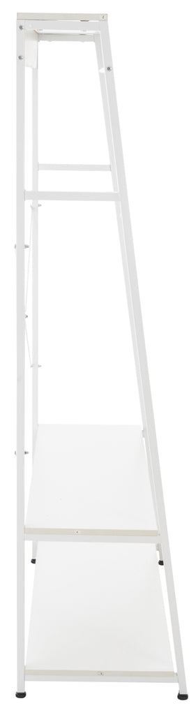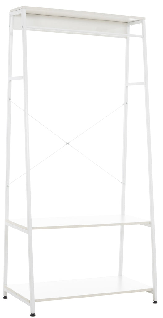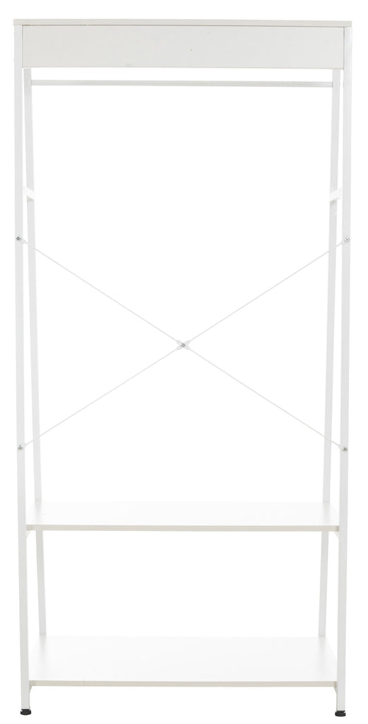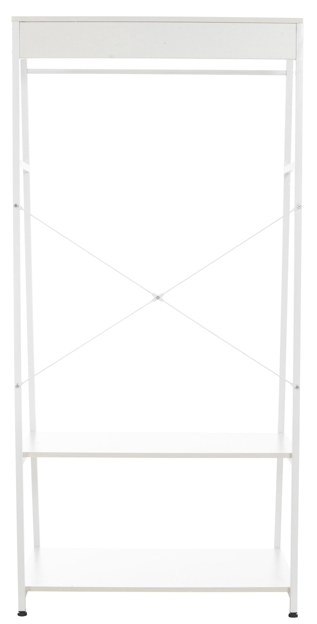 Meuble de rangement entrée porte-vêtements étagère penderie en bois blanc et métal blanc 10_0003598