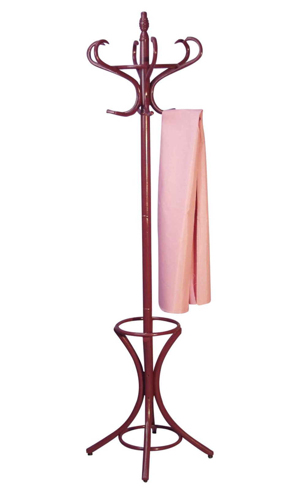 Porte-manteau en bois couleur mûre clair porte-parapluie avec 6 crochets double 184cm MED05105