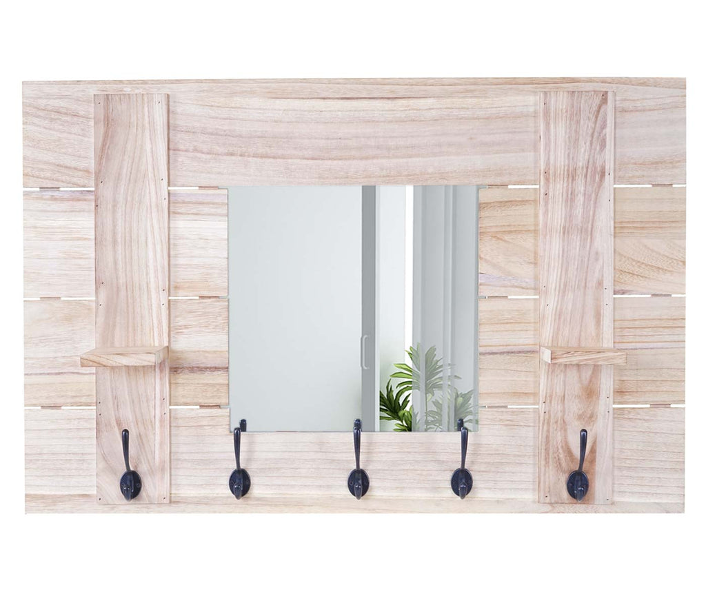 1x portemanteau mural miroir design vintage avec 5 crochets 90 x 60 cm marron naturel 04_0008172
