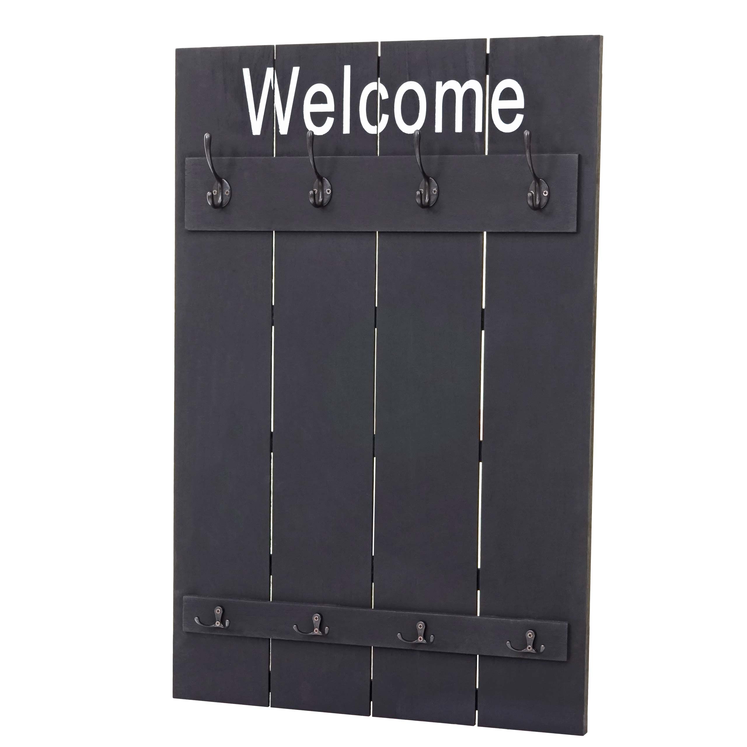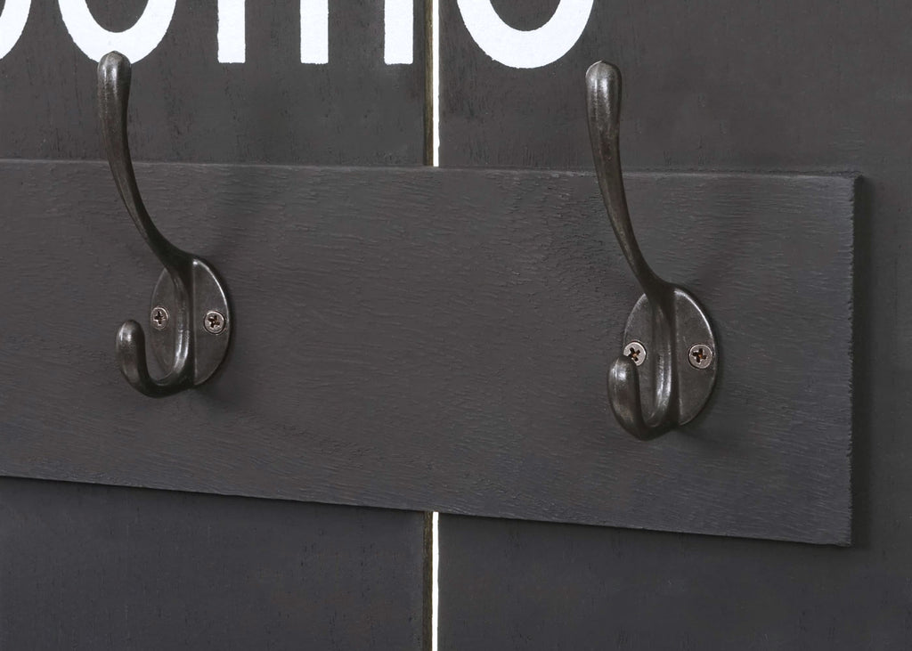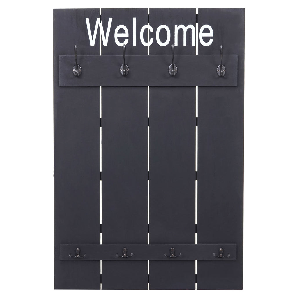 Porte manteau mural Welcome panneau avec 8 crochets style vintage 91x60cm bois gris foncé 04_0001003
