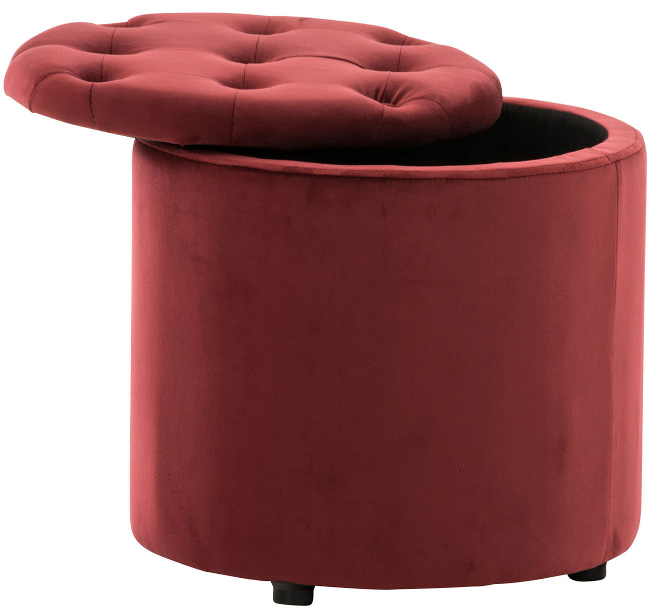 Pouf tabouret coffre avec espace de rangement en tissu velours rouge 42x44cm TABO10079