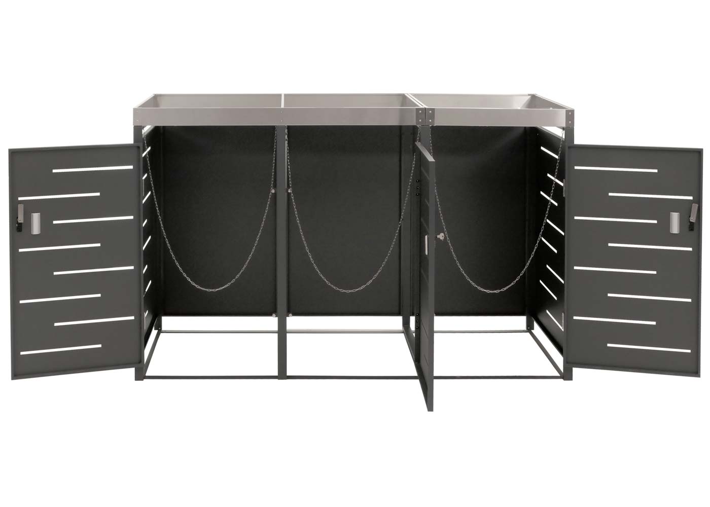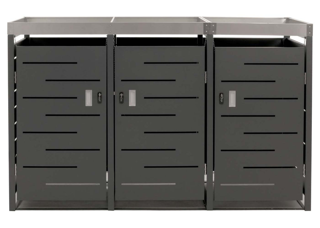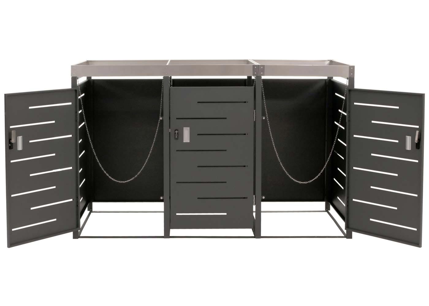 Abris poubelle verrouillable avec bac à plantes capacité de 80 à 240 litres acier inoxydable-métal 125x198x84 cm 04_0008231