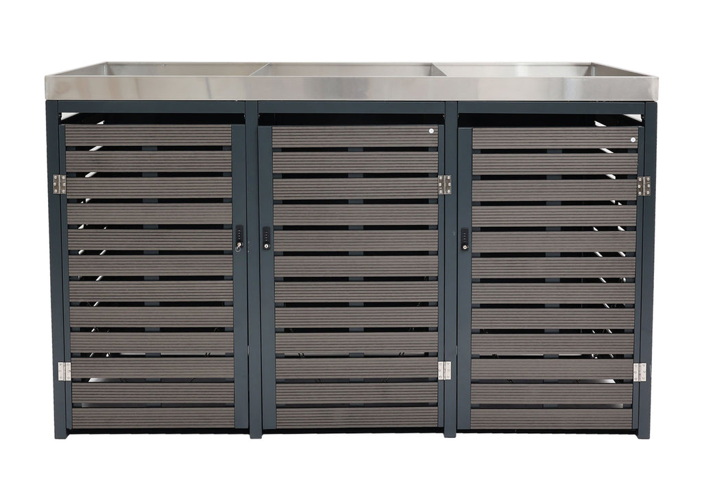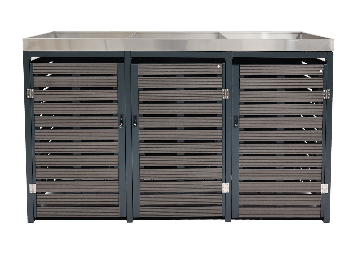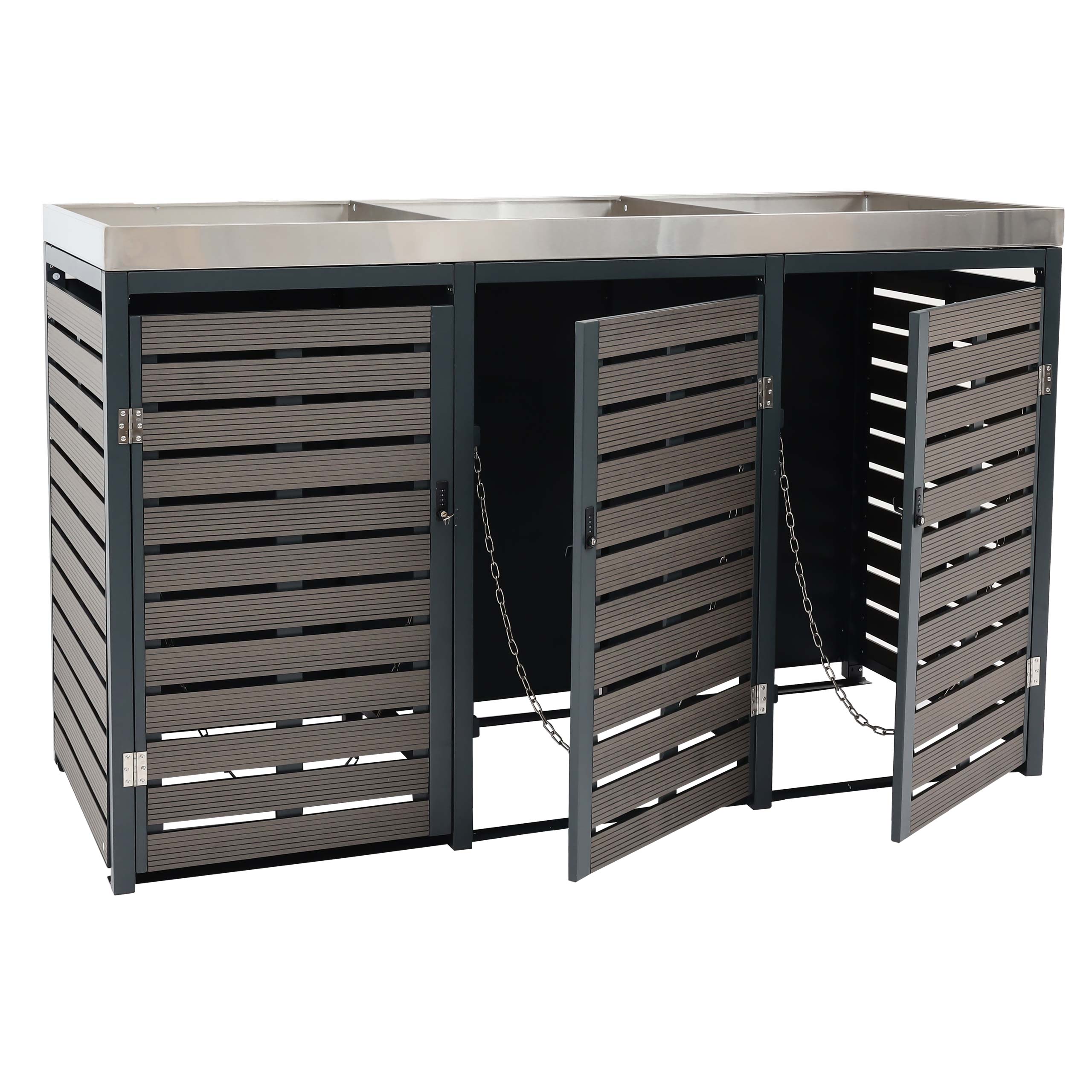 Abris poubelles verrouillable avec bac à plantes jardinière 124x200x84 cm wpc acier inoxydable 107kg anthracite 04_0008236