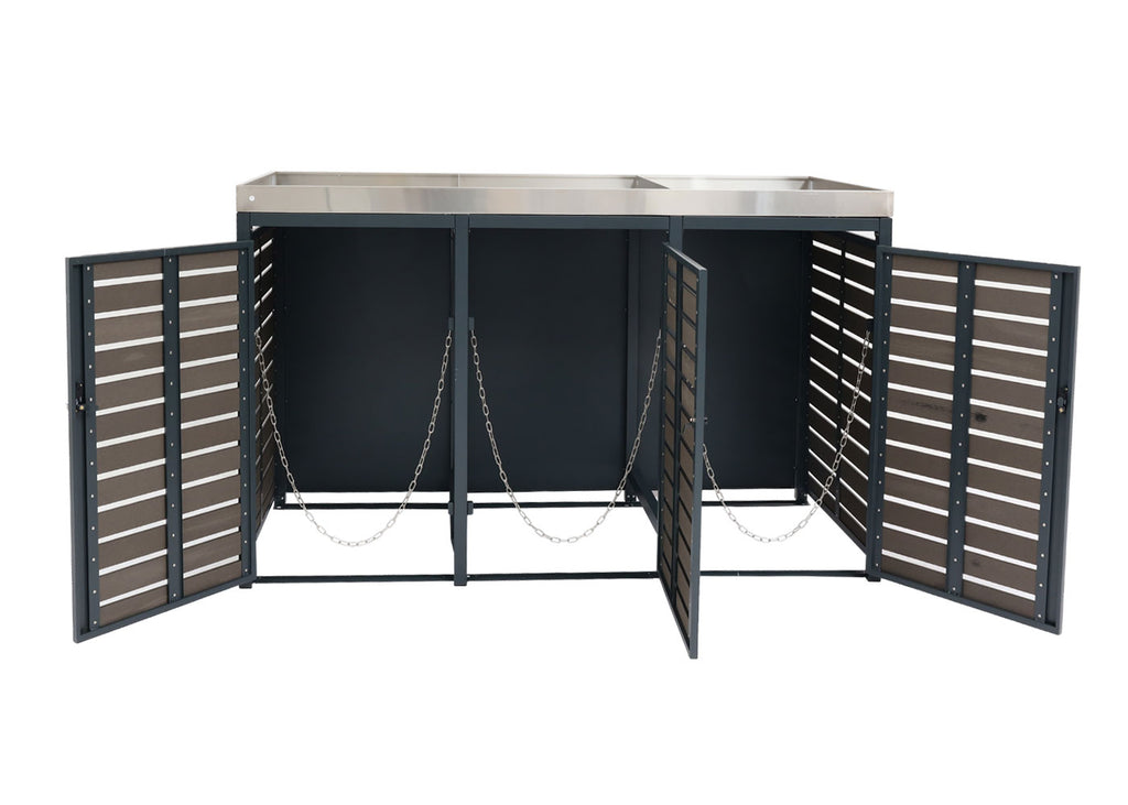 Ce revêtement de poubelle moderne avec bac à plantes n'est pas seulement attrayant visuellement. En plus des portes verrouillables et du boîtier robuste, le bac à plantes est équipé de trous de drainage pour l'excès d'eau.