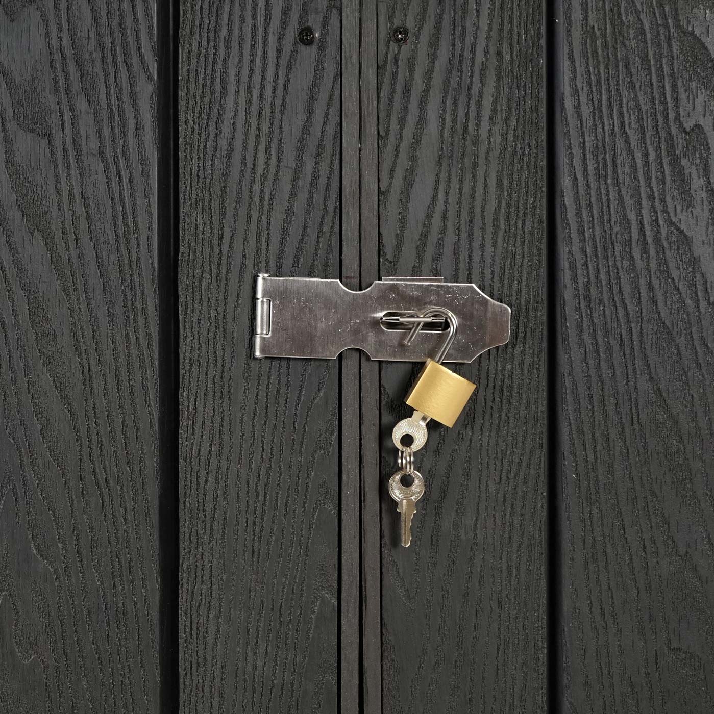 La porte est équipée d'un cadenas et de poignées pour une ouverture pratique.