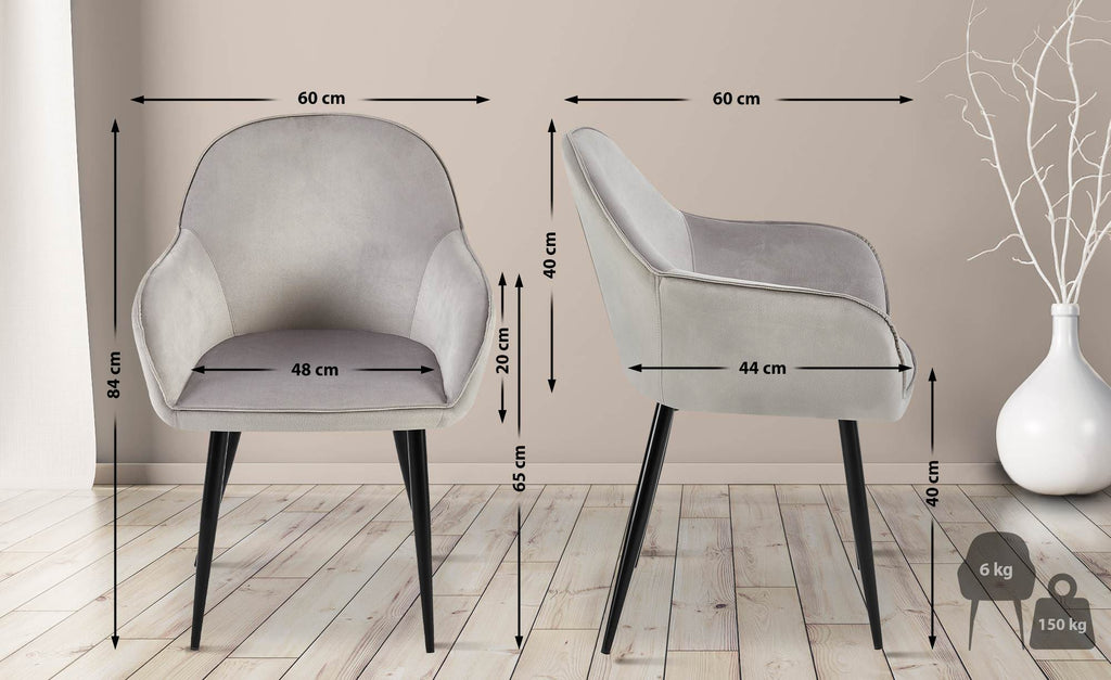 Set de 2 chaises de salle à manger dossier arrondis avec accoudoirs en velours gris 10_0001529