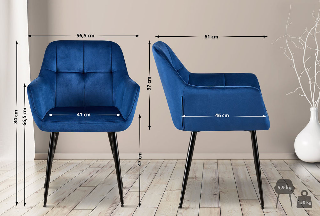 Lot de 2 chaises de salle à manger design retro coutures décoratives en carrées assise en velours bleu 10_0001531