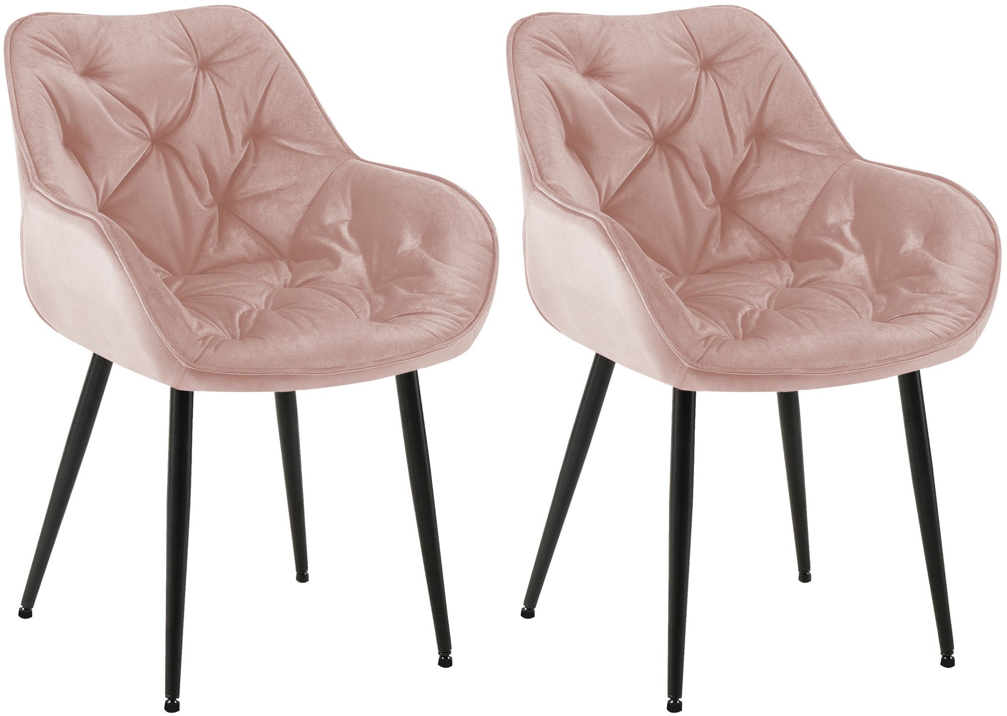 Lot de 2 chaises de salle à manger coutures décoratives en velours rose et pieds en métal noir 10_0001661