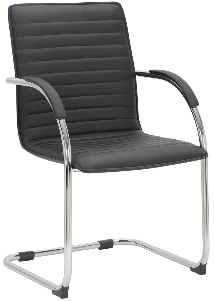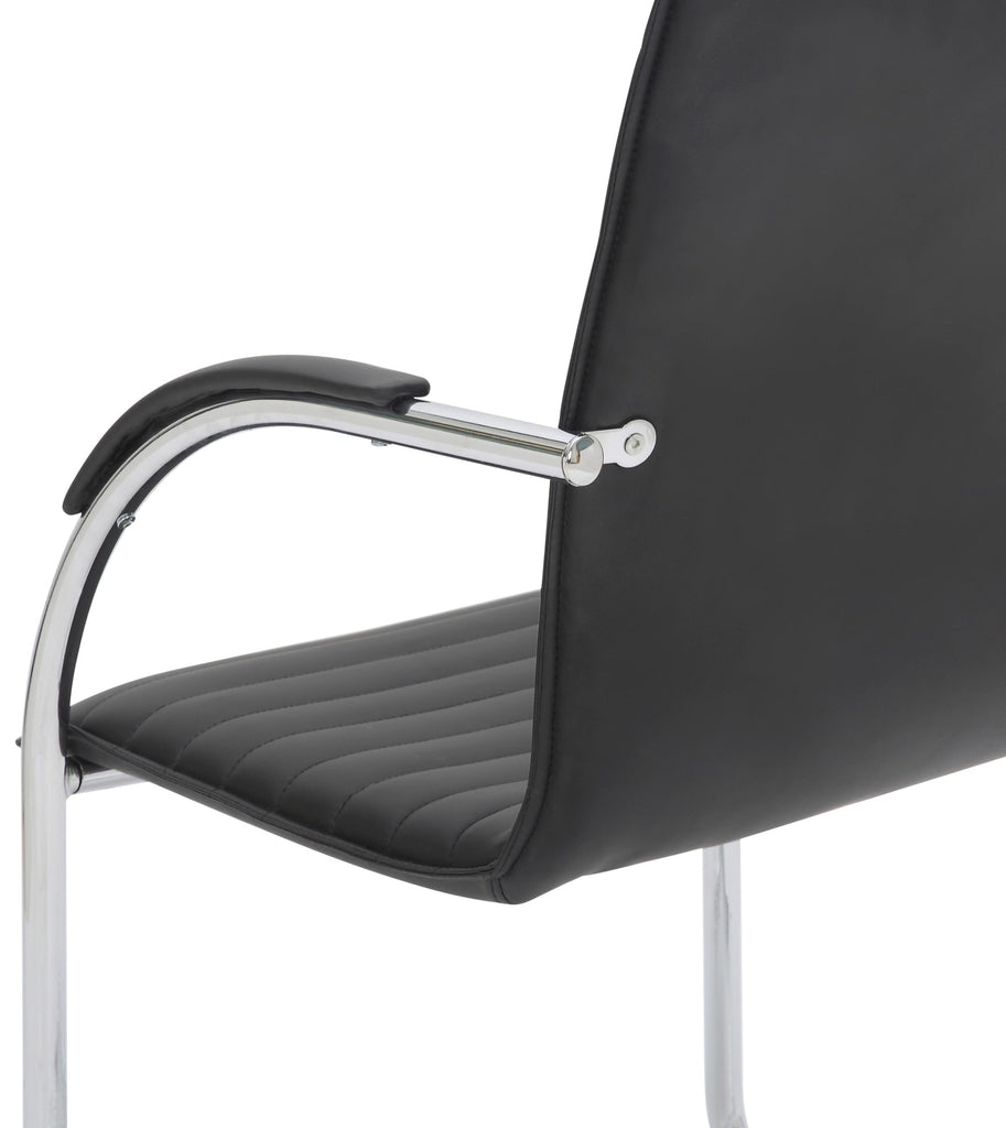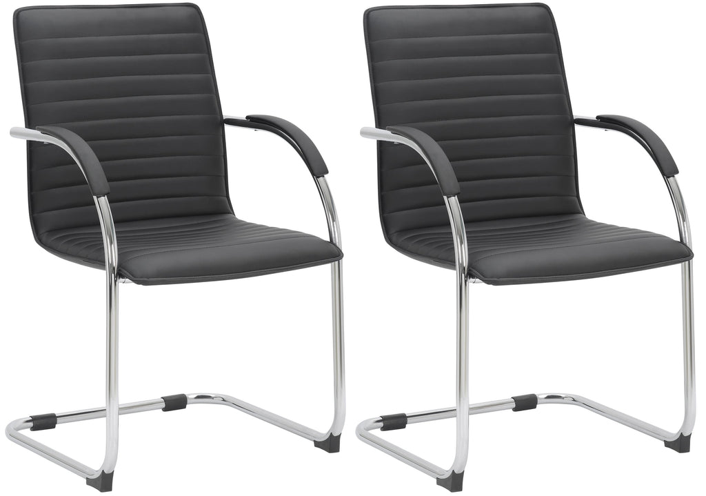 Set de 2 chaises visiteurs accoudoirs en PVC noir piétement luge en métal chromé 10_0003122