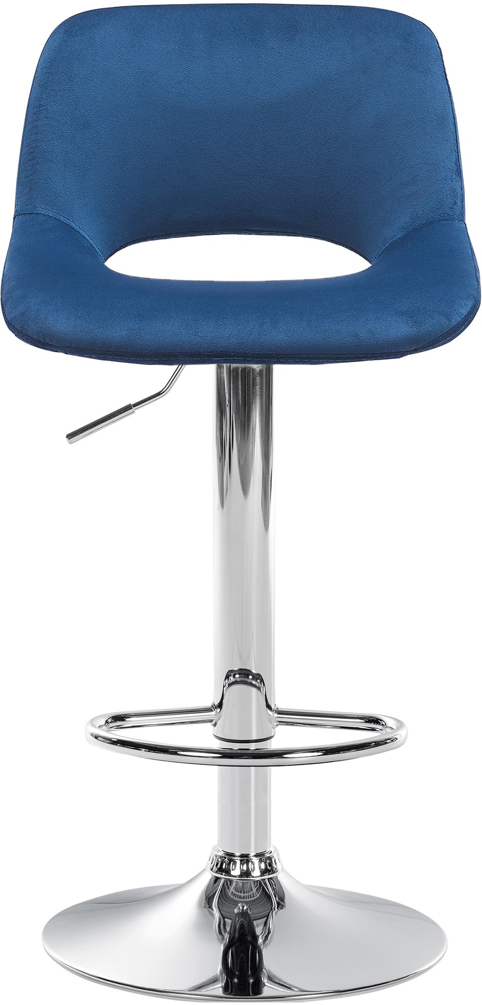 Tabourets de bar chaises haute x2 avec repose-pieds en velours bleu piètement métallique chromé 10_0004073
