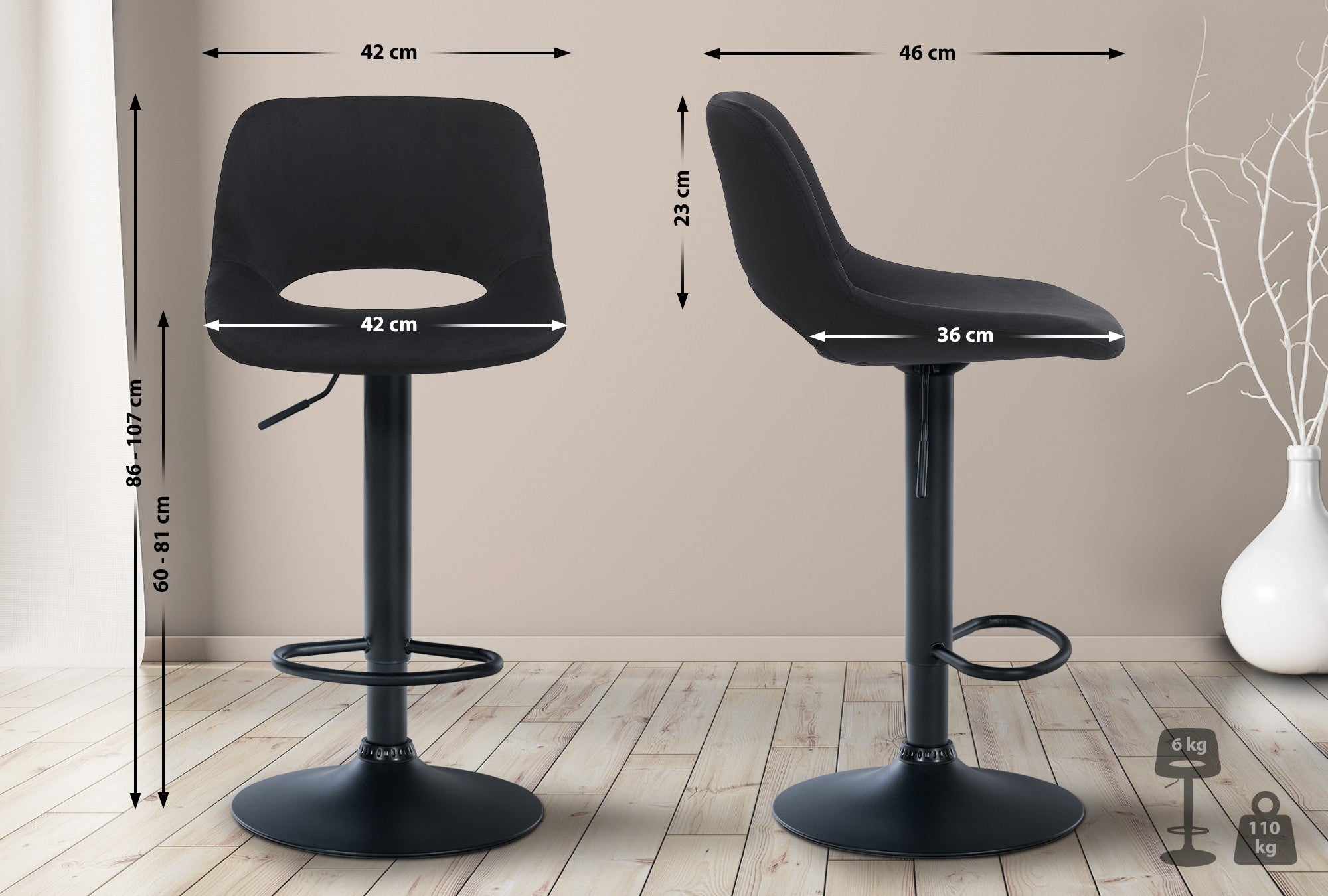 Hauteur d'assise : 60 - 81 cm