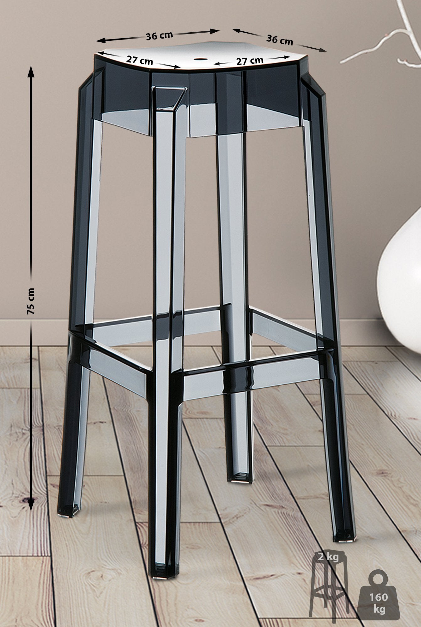 Le set de tabourets de bar séduit par son design moderne et fonctionnel. Sa finition exceptionnelle répond aux exigences les plus élevées et garantit une esthétique unique. Ils s'adaptent à presque tous les styles et confèrent à chaque espace de bar une sensation d'habitat mondain. La hauteur d'assise est de 75 cm et est particulièrement confortable grâce au repose-pieds périphérique. Les tabourets sont fabriqués en nylon Techno-Polymer PA6 brillant de haute qualité ou en polycarbonate transparent.