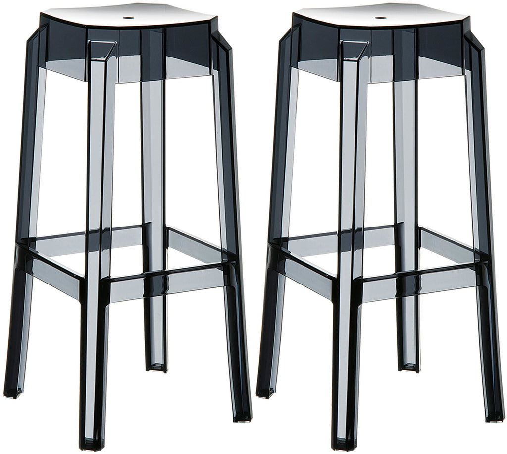 Lot de 2 tabourets de bar intérieur ou exterieur design moderne plastique noir transparent 10_0004150