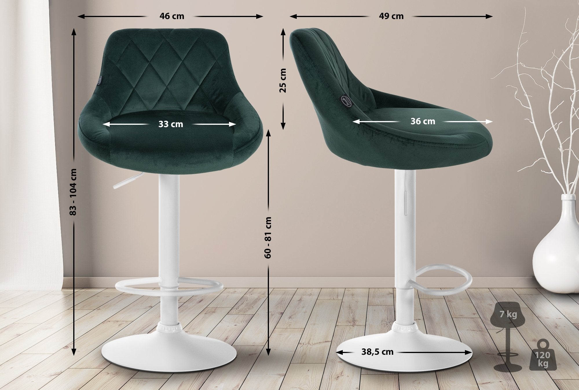 Lot de 2 tabourets de bar siège pivotant sur 360° en tissu vert foncé et métal blanc 10_0004271