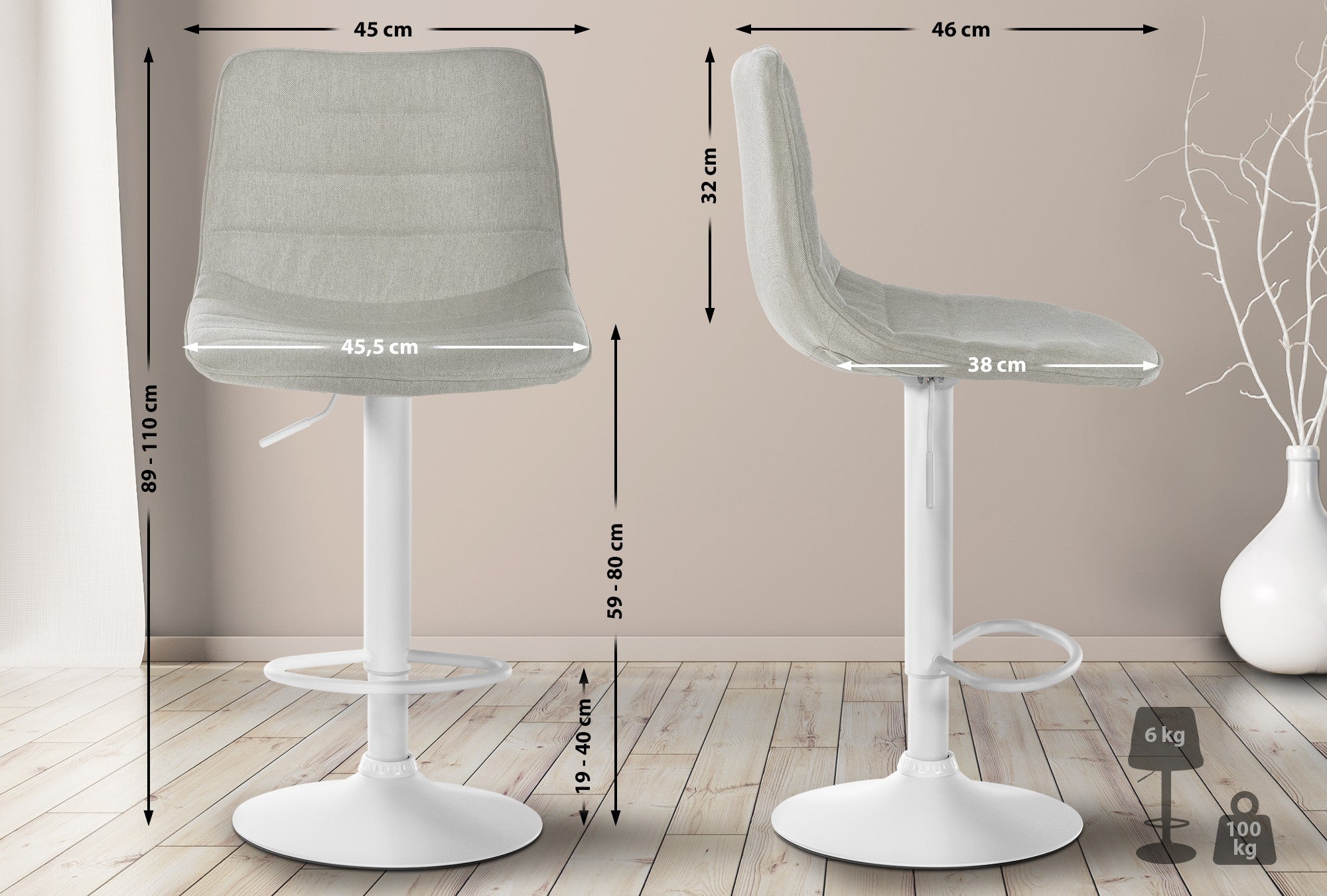 Lot de 2 tabourets de bar chaises hautes avec repose-pieds incurvé en tissu crème structure métallique blanc 10_0004317