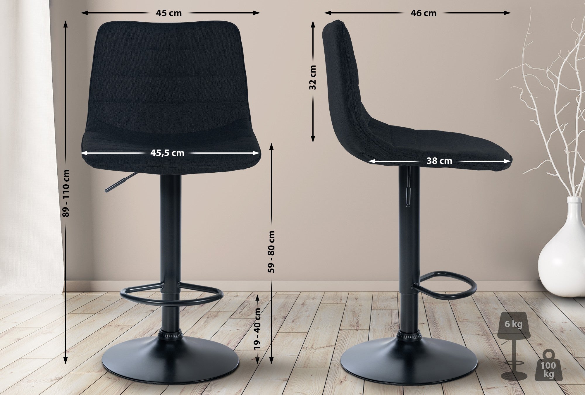 Lot de 2 tabourets de bar chaises hautes avec repose-pieds incurvé en tissu noir structure métallique noir 10_0004311