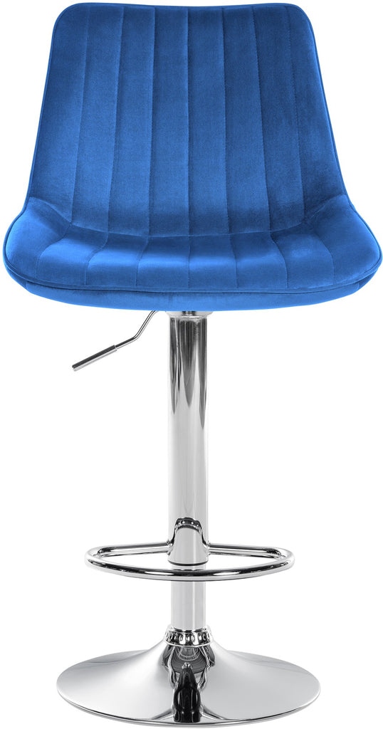 Lot de 2 tabourets de bar réglable en hauteur pivotant à 360° assise en tissu bleu couture verticale pied métal chromé 10_0004426
