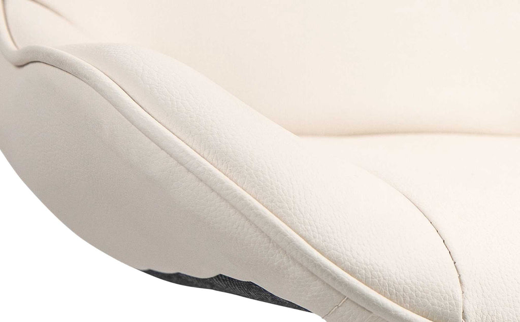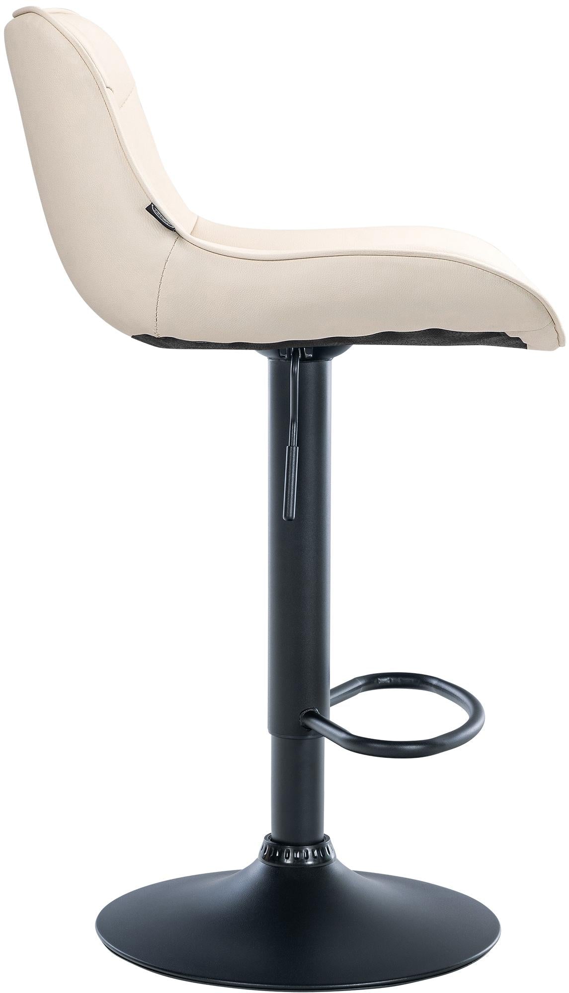 Le piètement en métal et le pied en trompette assurent la stabilité et la durabilité. Le repose-pieds intégré s'adapte à la hauteur d'assise et offre un soutien supplémentaire. L'assise en similicuir est facile à entretenir et durable. Des protections de sol protègent des rayures.