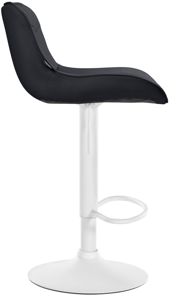 Le piètement en métal et le pied en trompette assurent la stabilité et la durabilité. Le repose-pieds intégré s'adapte à la hauteur d'assise et offre un soutien supplémentaire. L'assise en similicuir est facile à entretenir et durable. Des protections de sol protègent des rayures.
