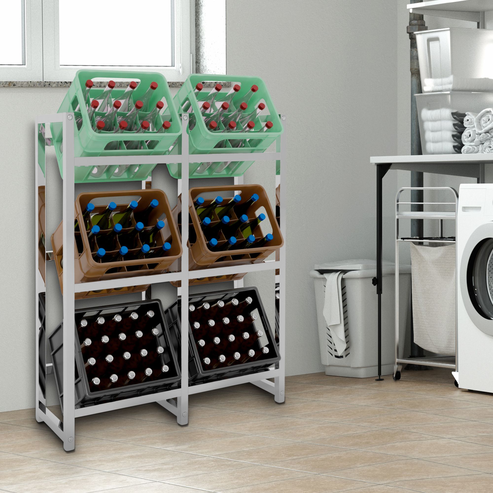 Étagère pour 6 caisses à boissons rangement support bouteilles 117x91 cm en métal chromé 10_0003216