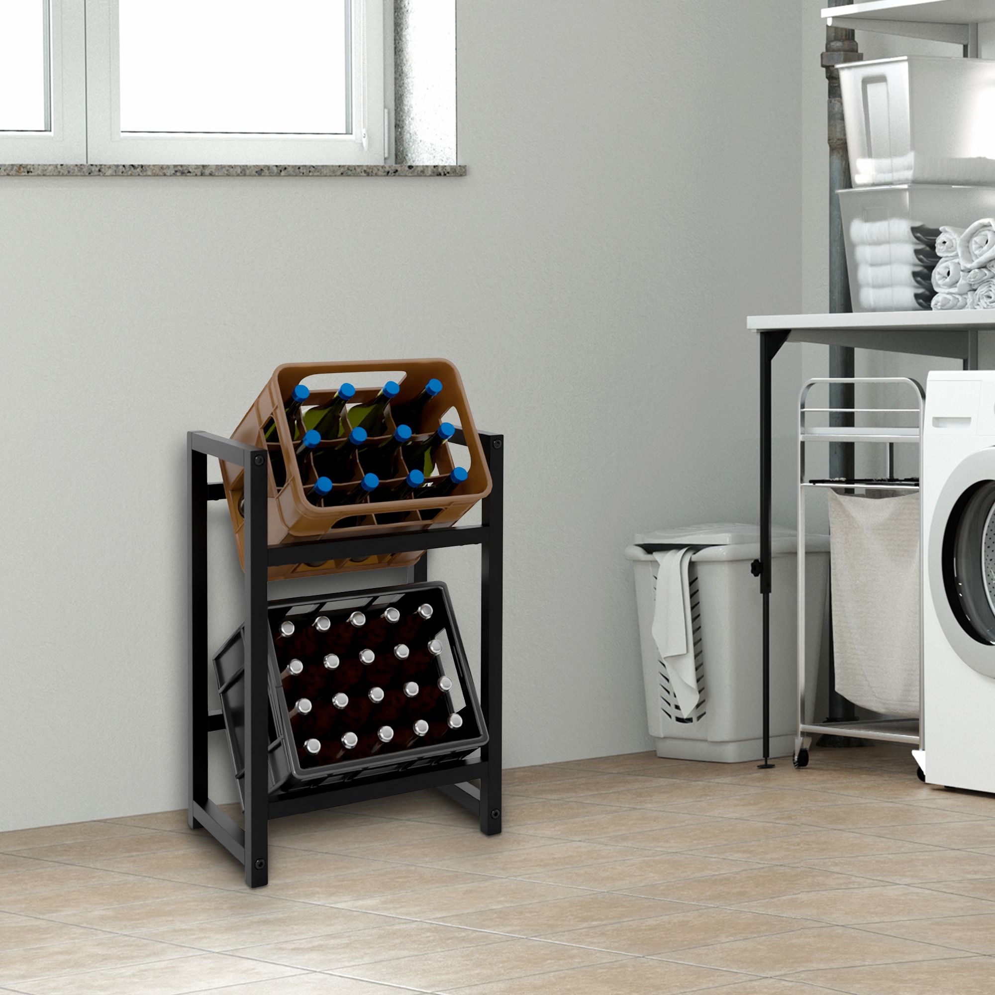 Étagère pour 2 caisses à boissons rangement support bouteilles 47x76 cm en métal noir 10_0003072