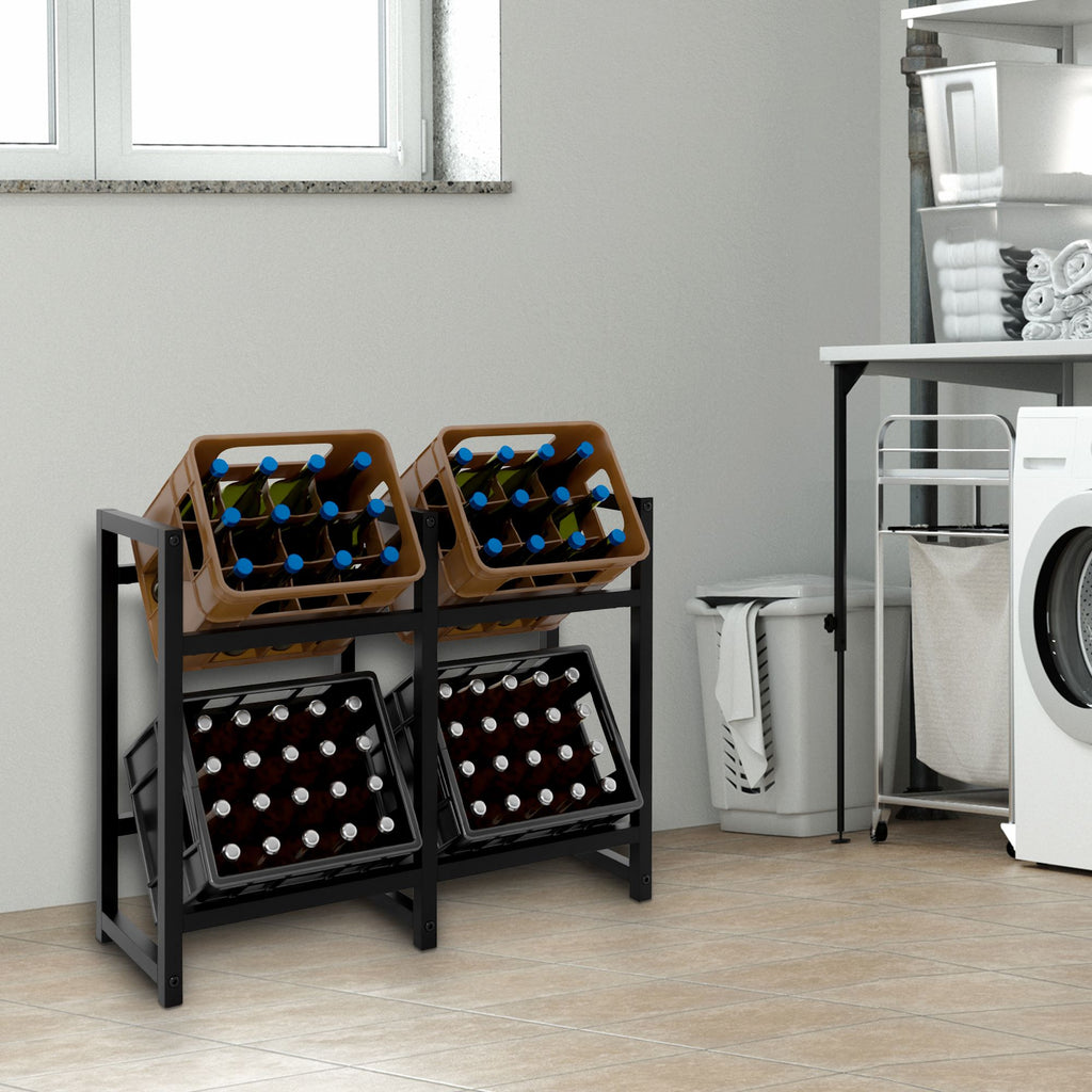 Étagère pour 4 caisses à boissons rangement support bouteilles 91x76 cm en métal noir 10_0003162