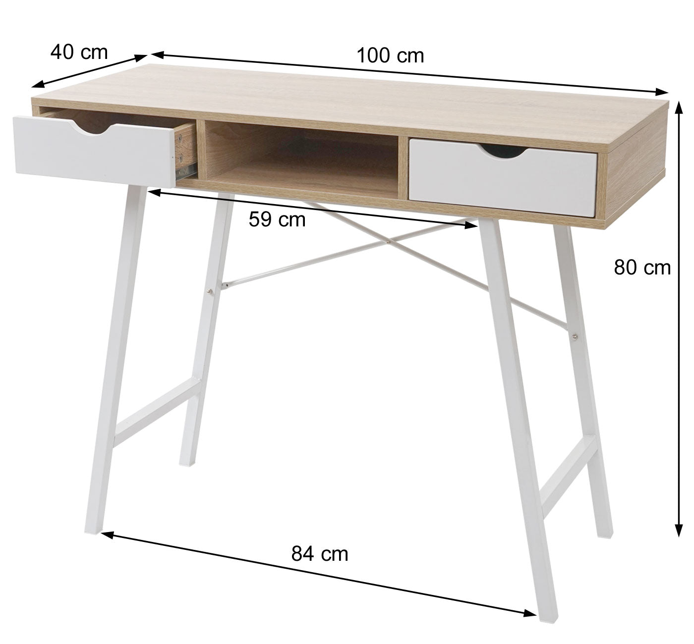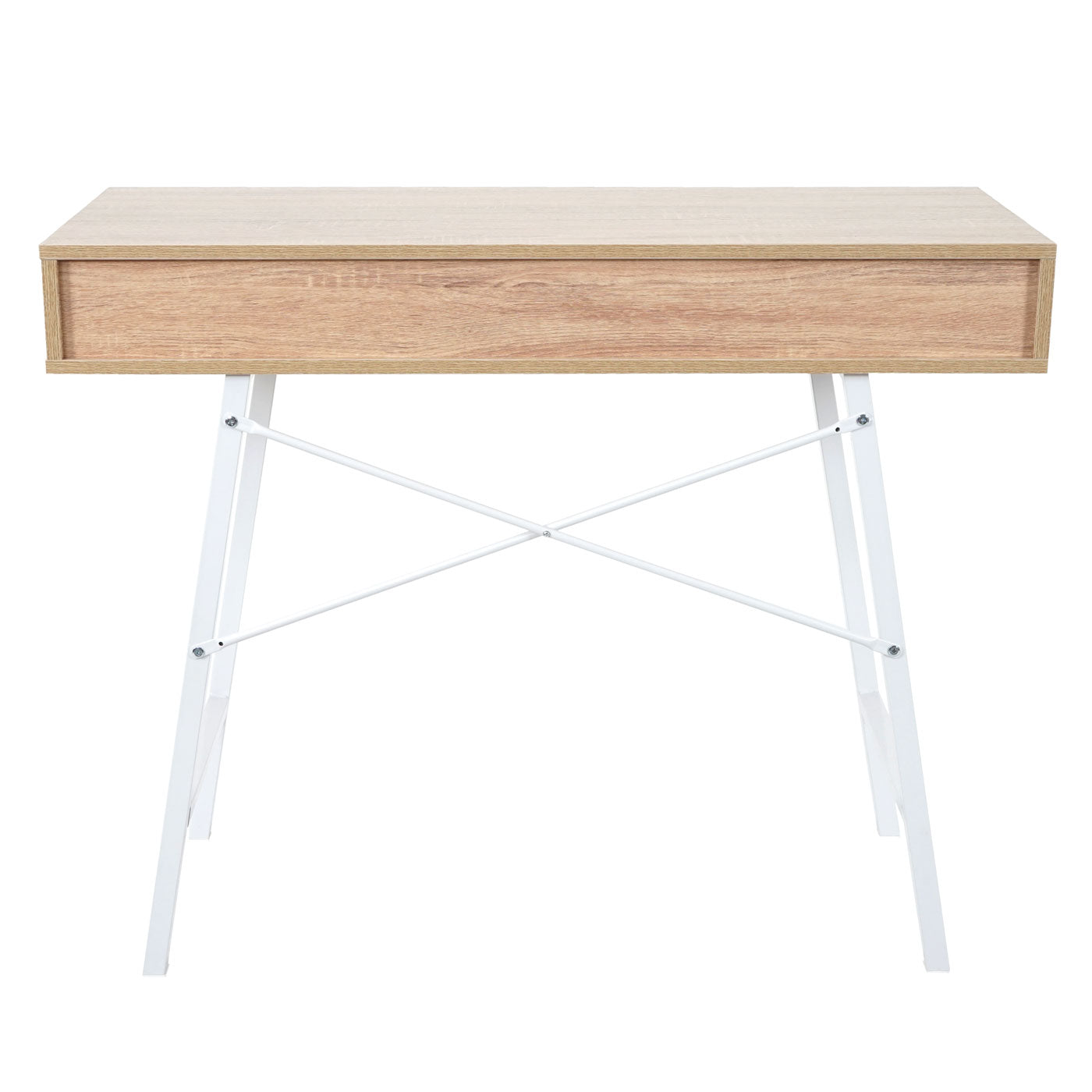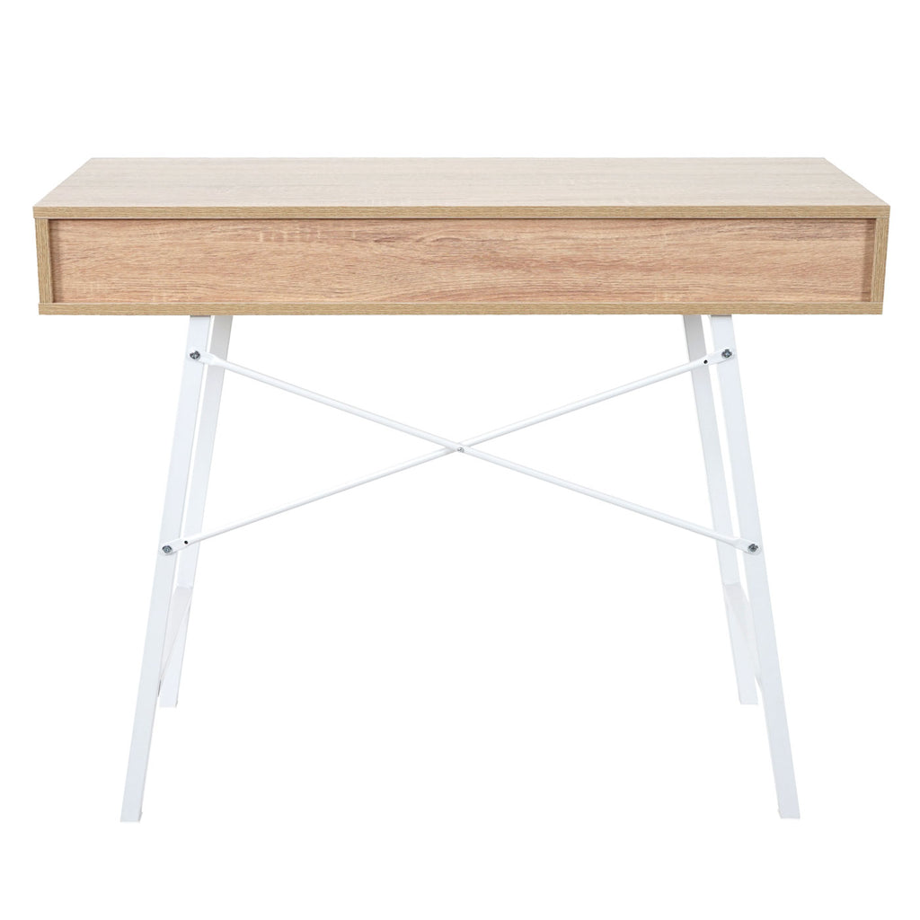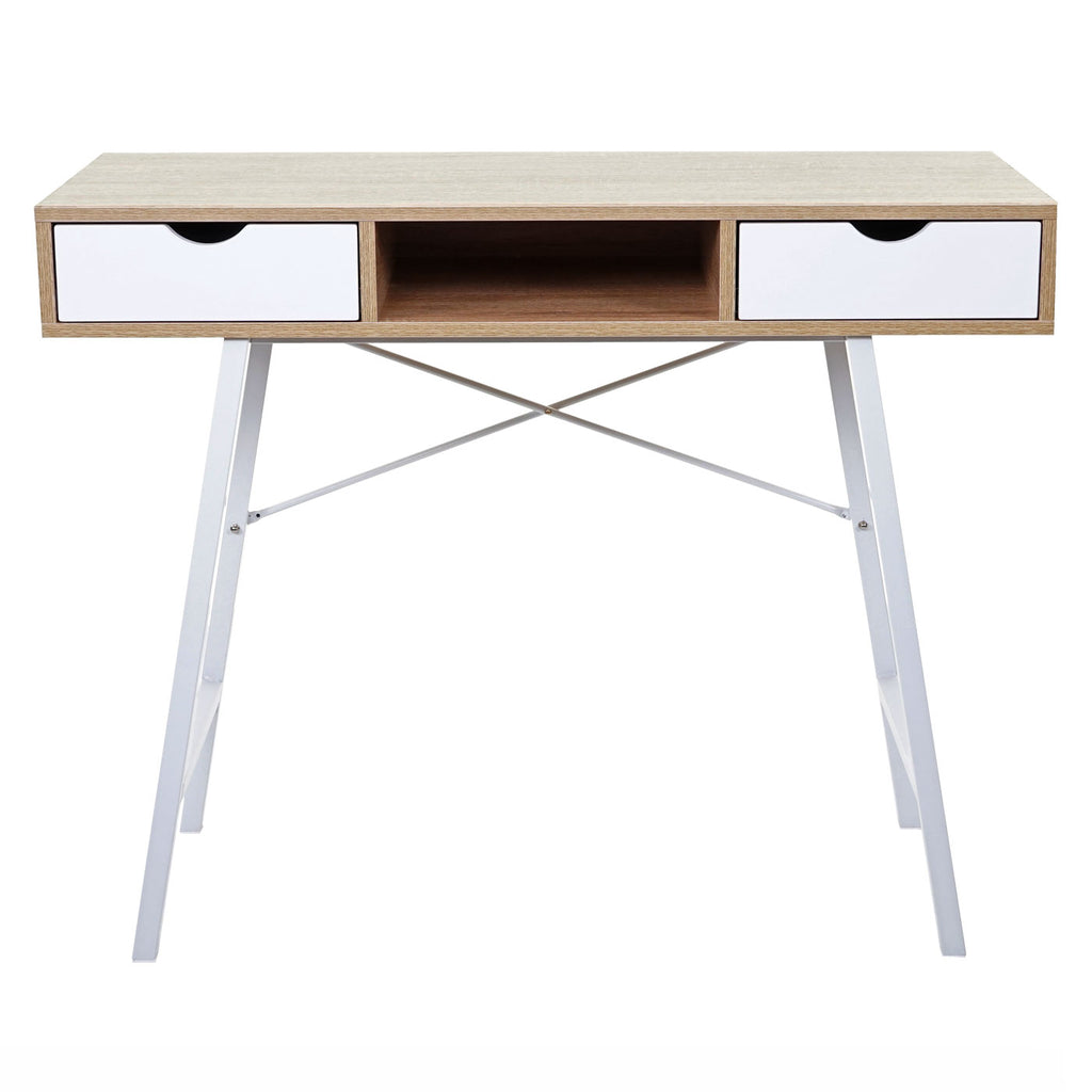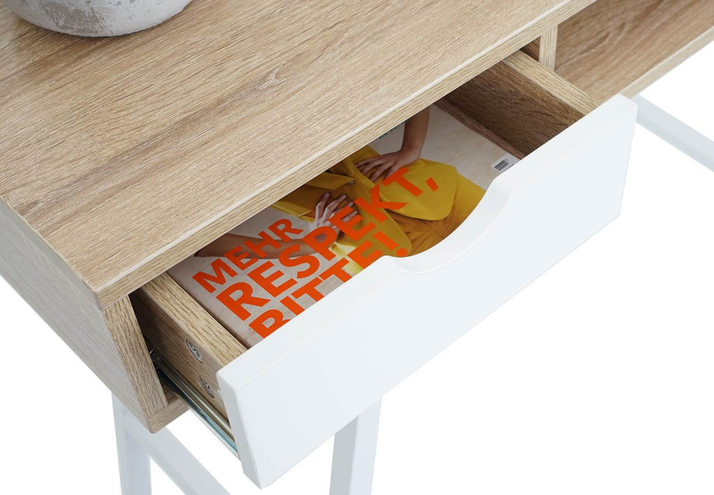 Table d'appoint bureau console avec tiroirs 100x40 cm blanc brun naturel design scandinave 04_0005053