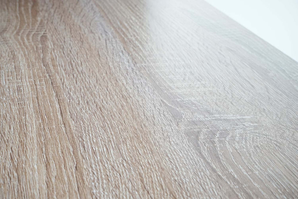 La surface de la table est recouverte d'un revêtement en mélamine, ce qui rend la table résistante aux rayures et à l'eau.