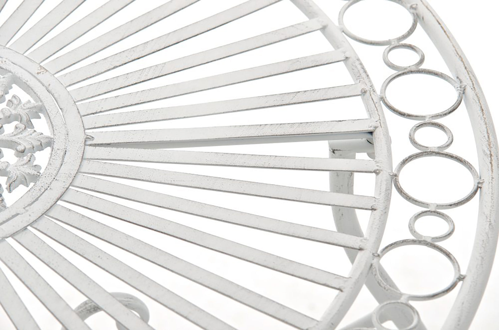 Table de jardin ronde style rustique en fer forgé blanc vieilli 10_0003044